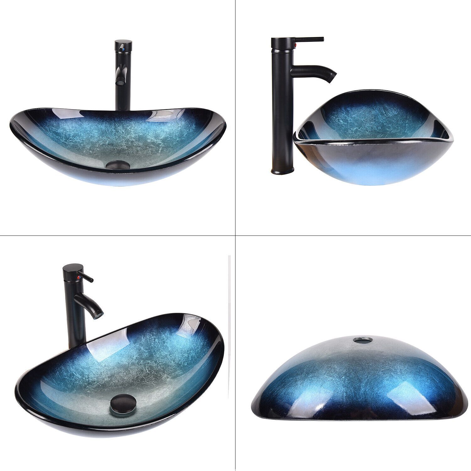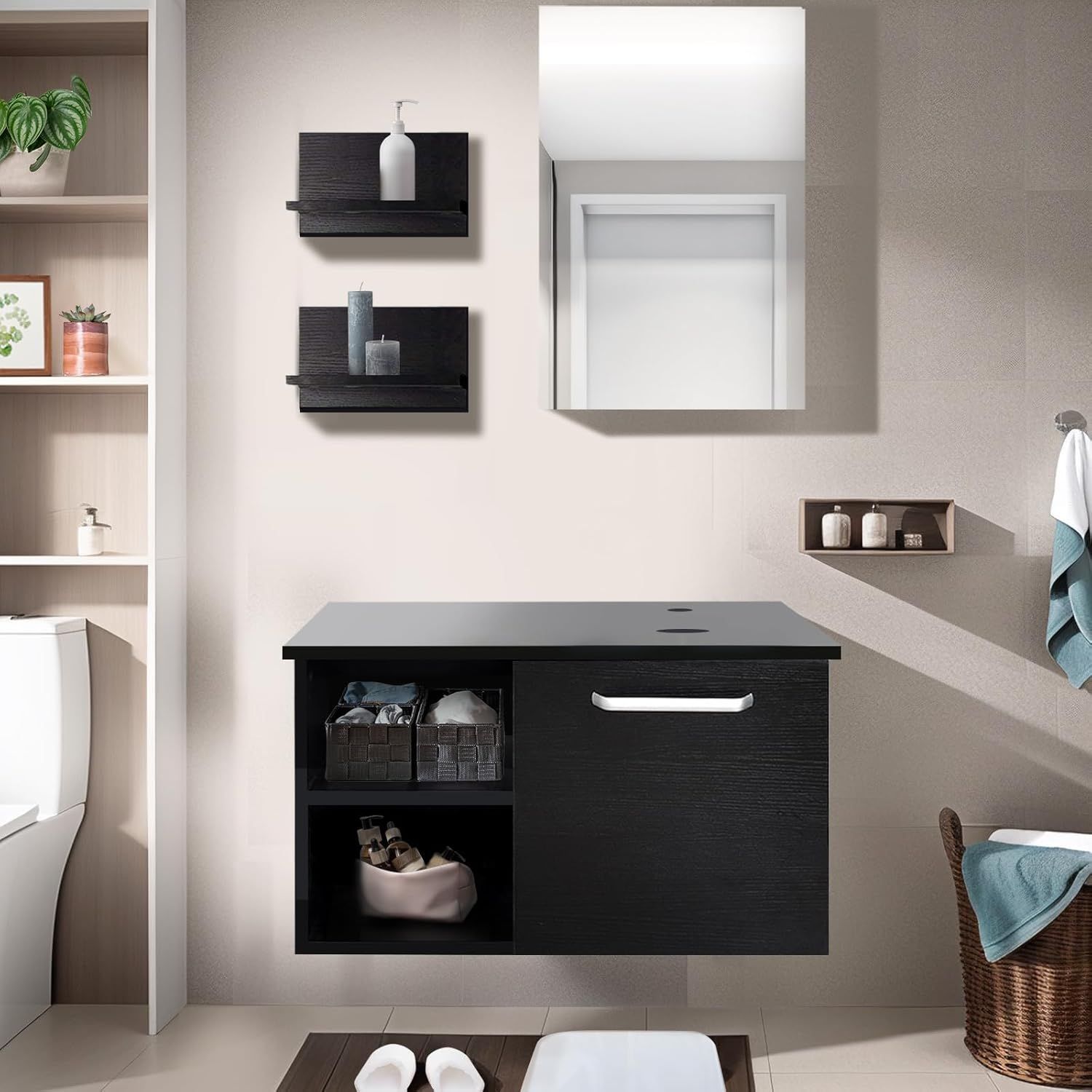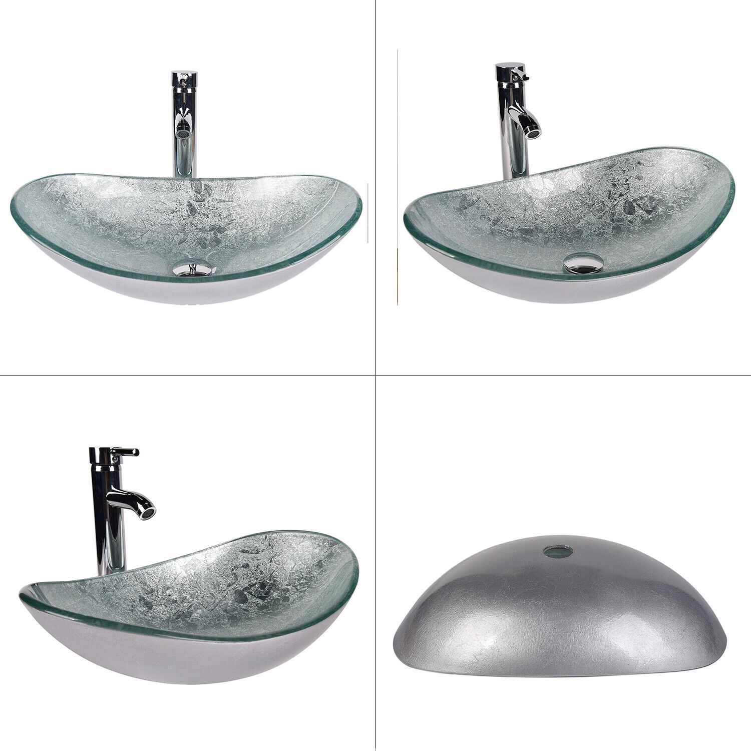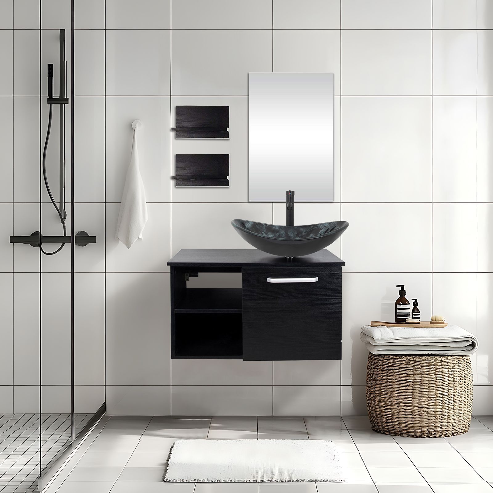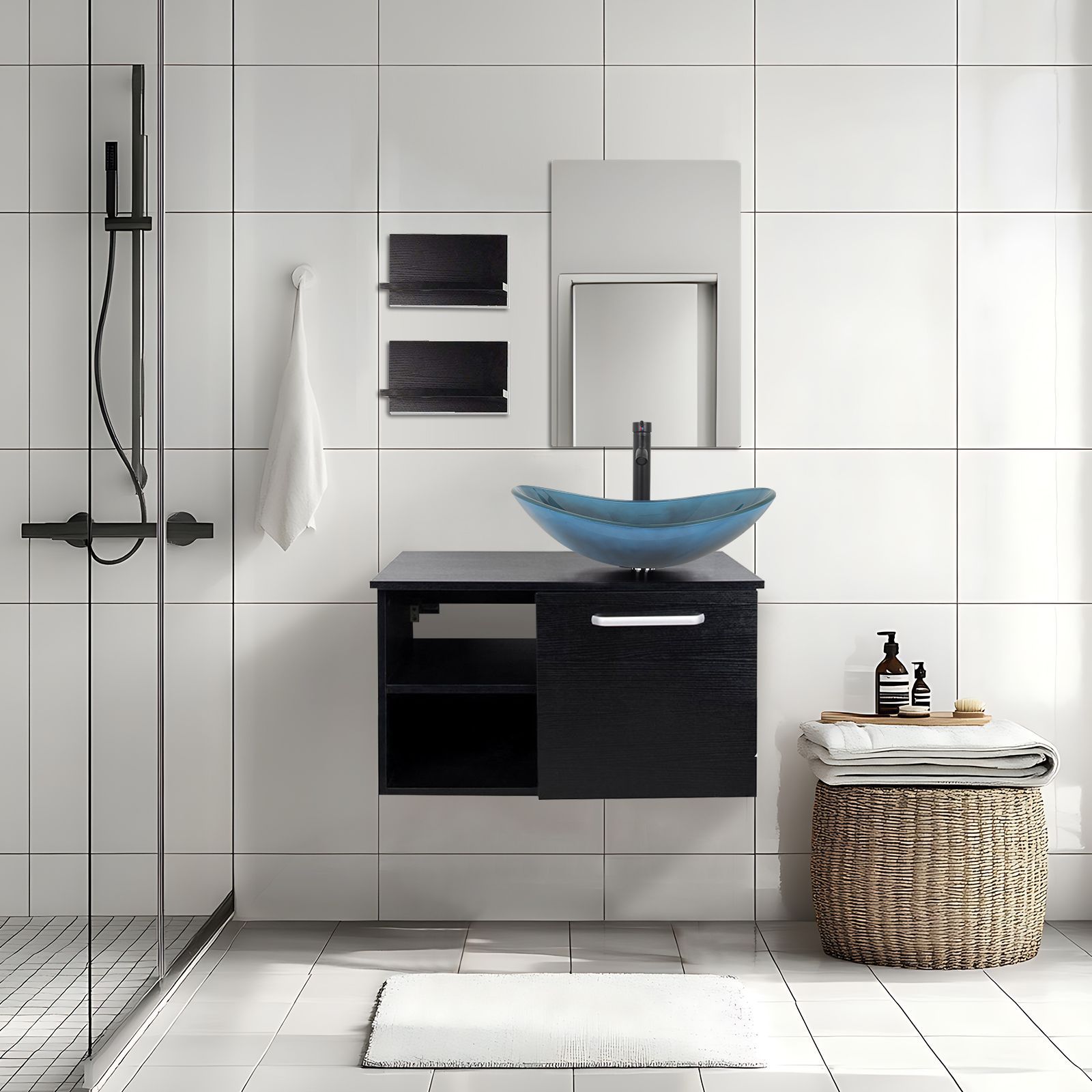 3 Tlg Badmöbel set 70cm Unterschrank Glas Waschbecken Spiegel Badezimmermöbel