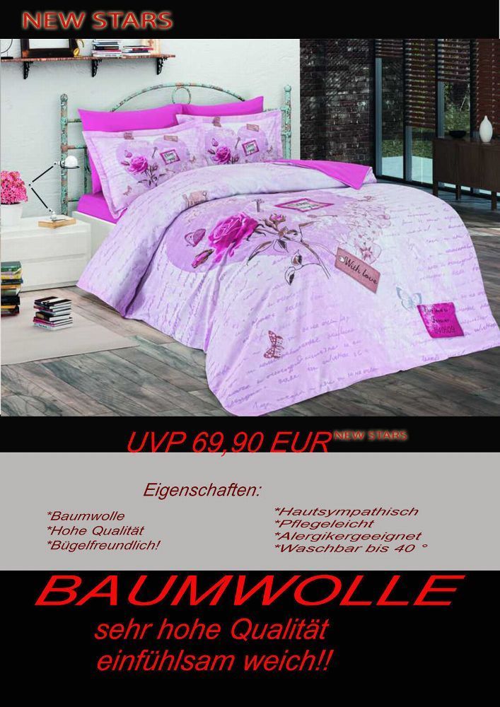 Lieferumfang: Maße: 1 Bettbezug 200cm x 220cm 2 Kissenbezüge 50cm x 70cm Eigenschaften: 100 % Baumwolle! Hohe-Qualität! Bügelfreundlich! Hautsympathisch! Pflegeleicht! Allergikergeeignet! waschbar bei 40°