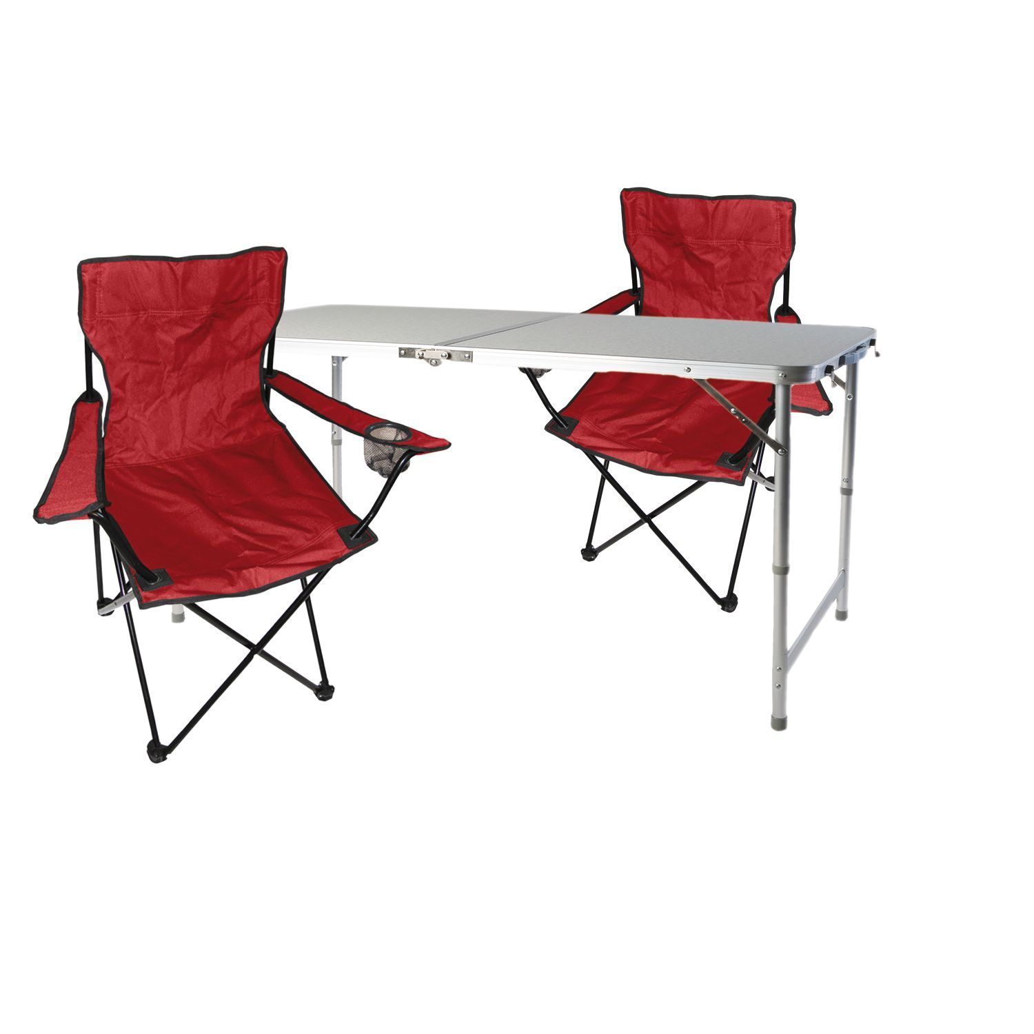 3-tlg. Campingmöbel Set rot Tisch höhenverstellbar Tragegriff Stühle Tasche