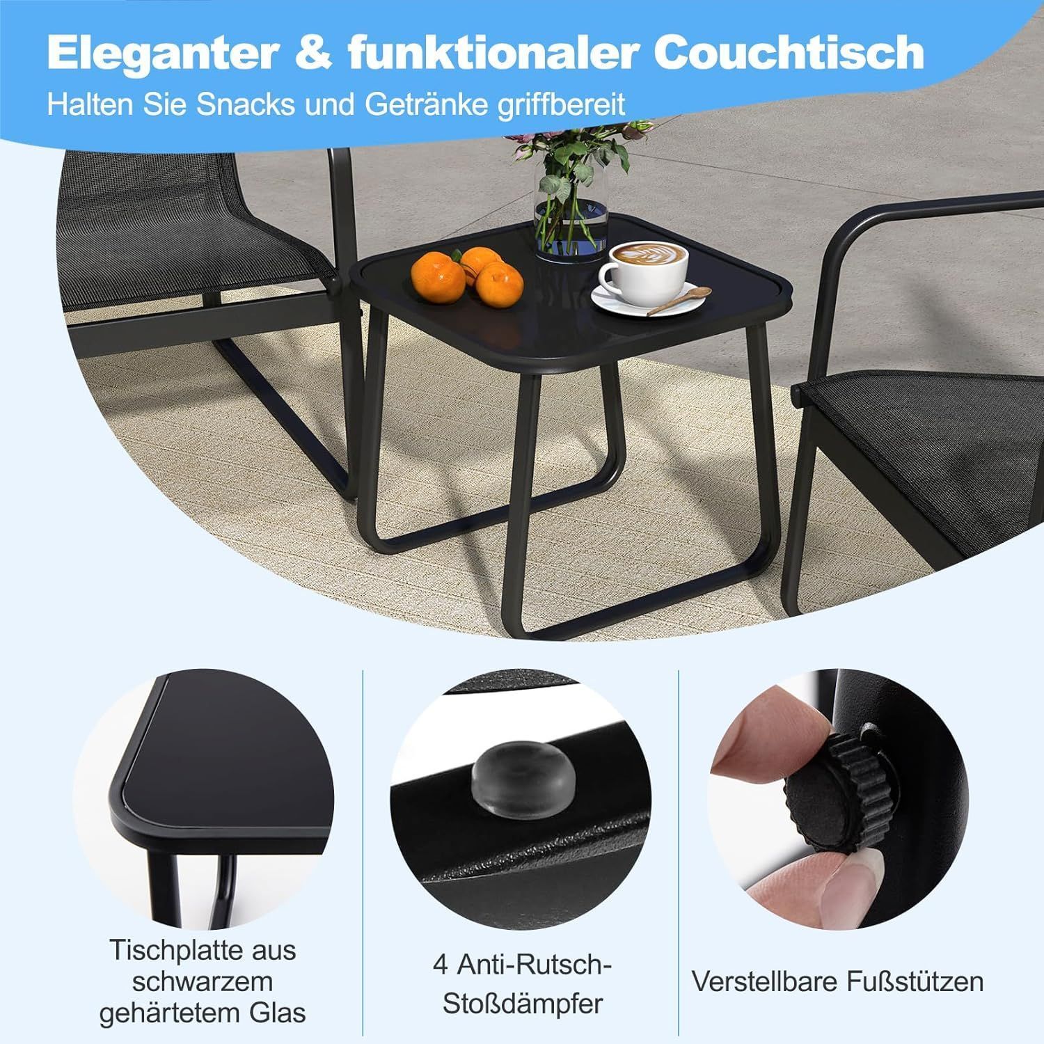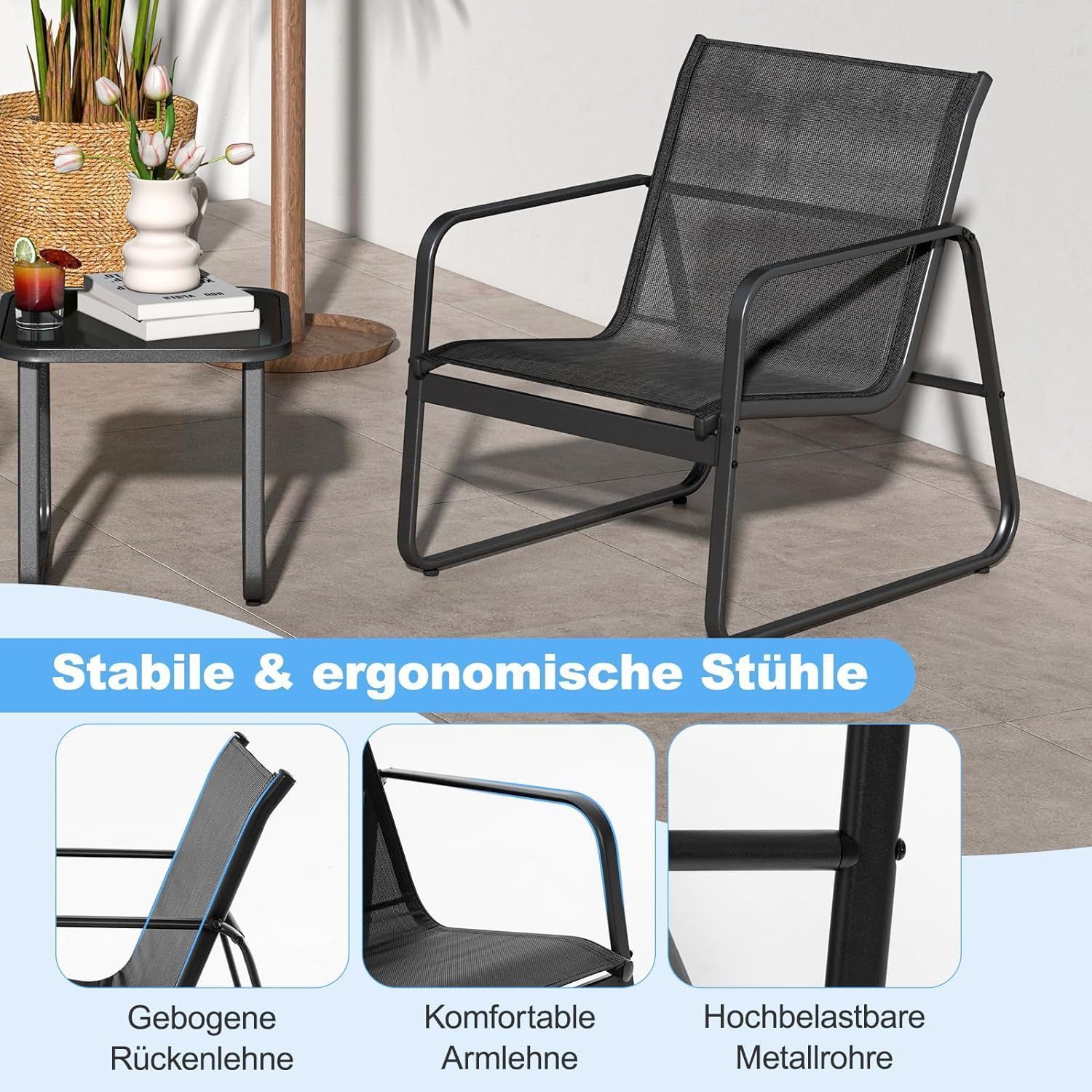 3-TLG. Gartenmöbel Set, Balkonset mit 2 Stühlen und Tisch, Balkonmöbel