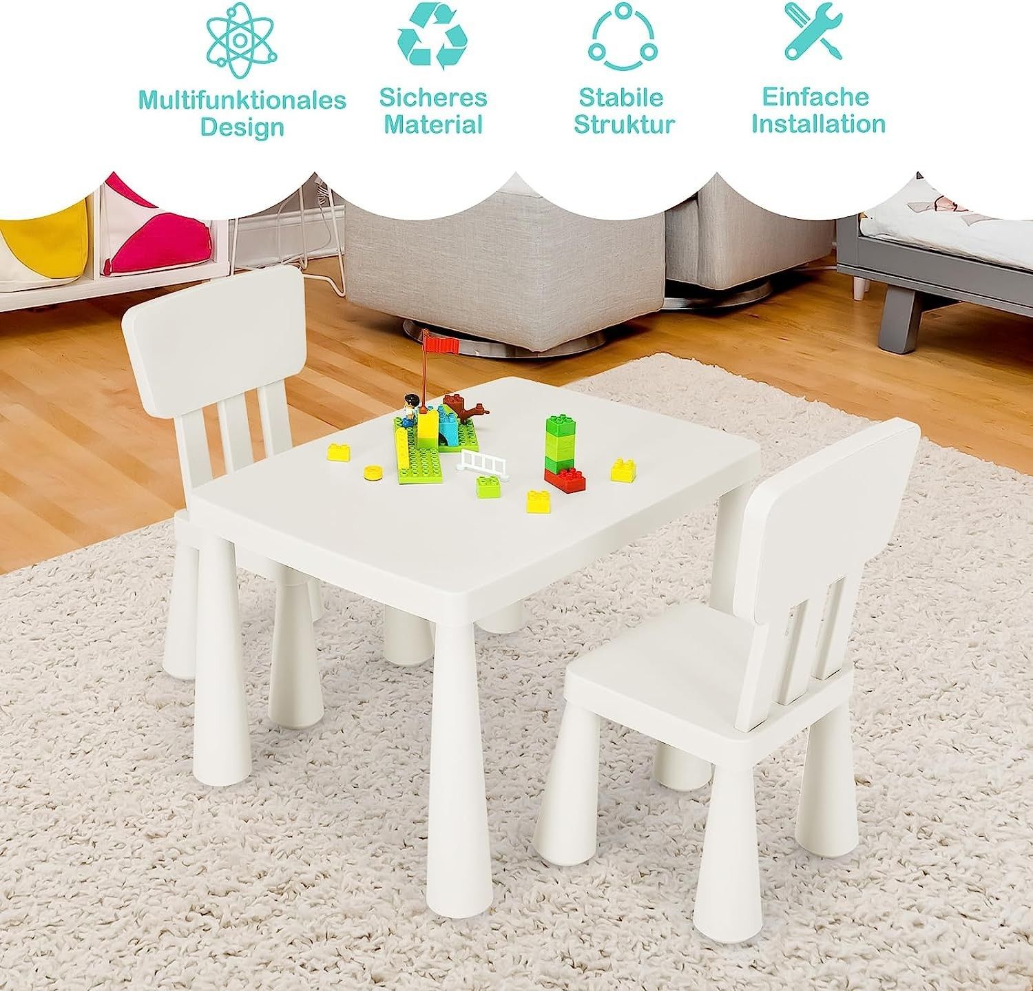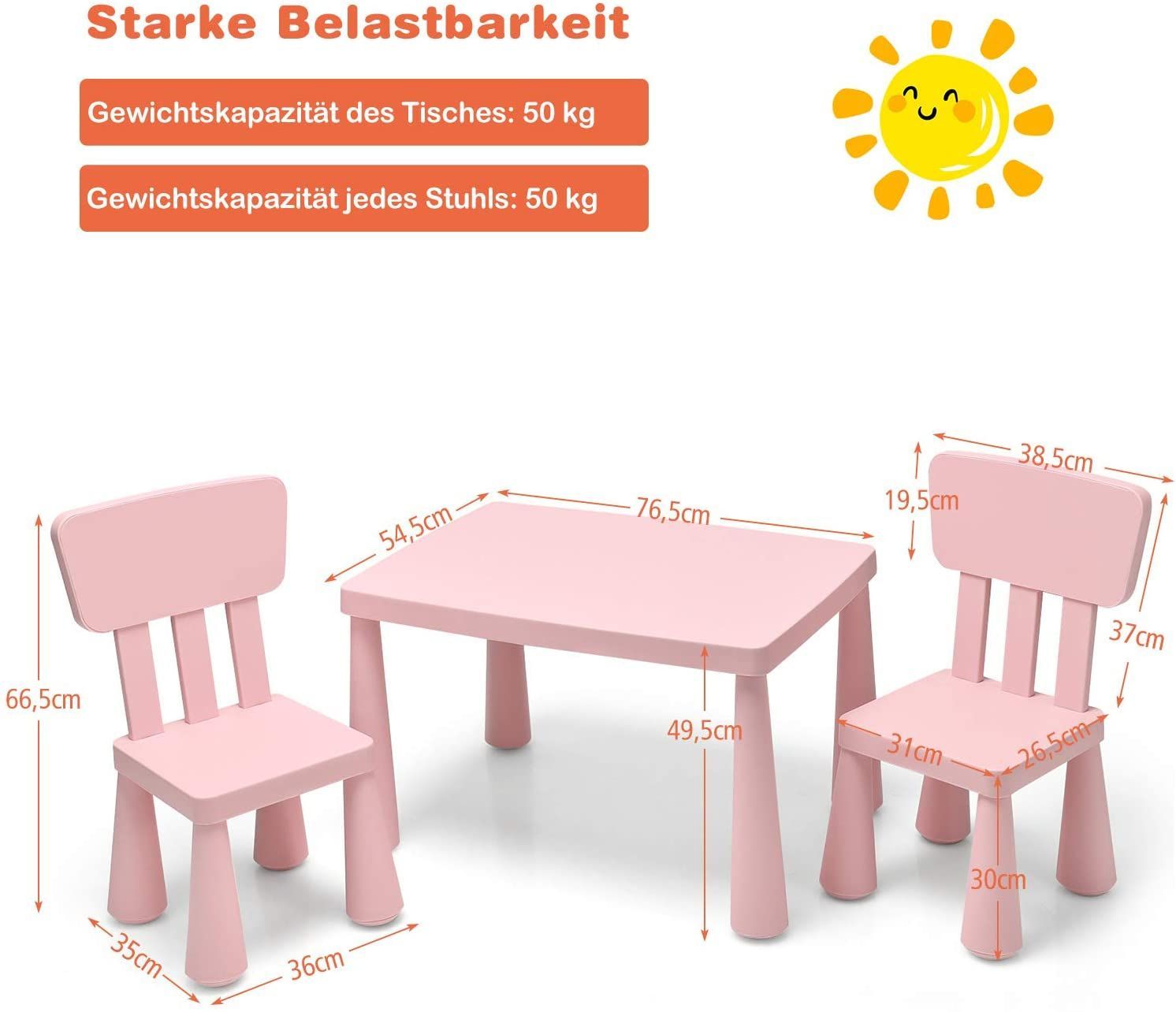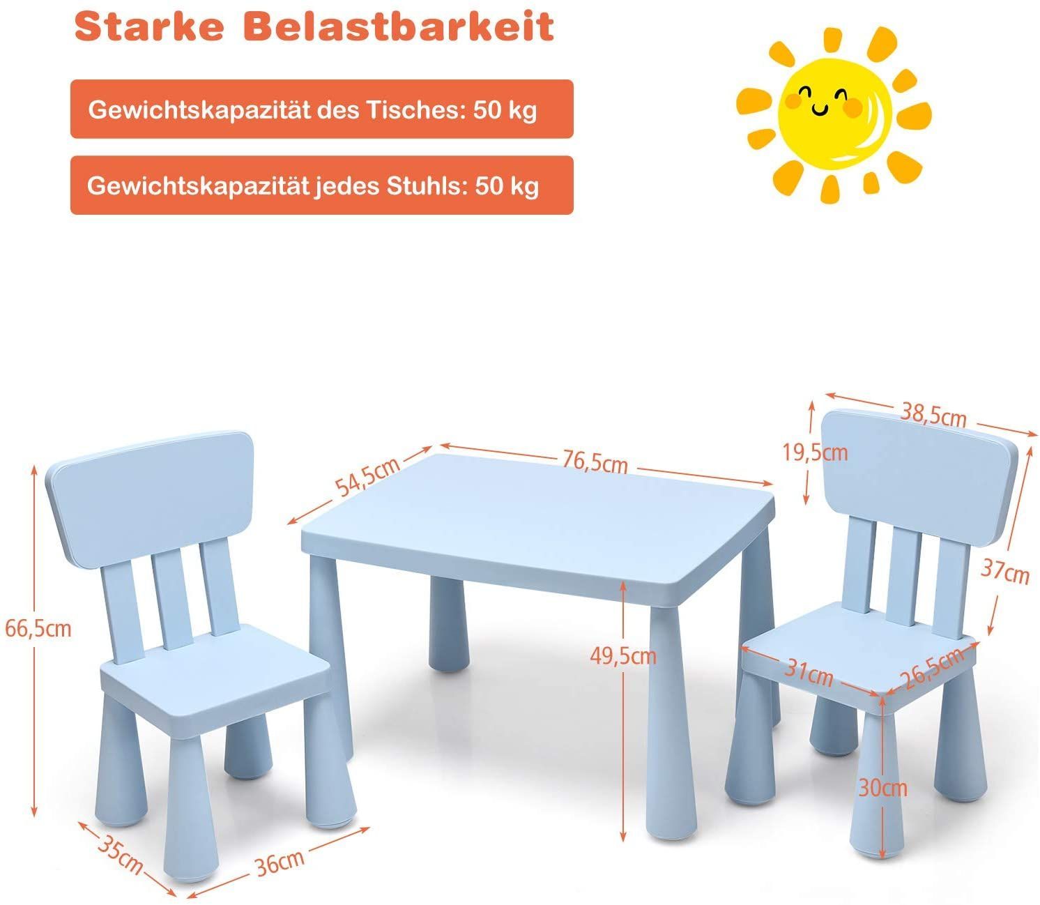 3 TLG. Kindersitzgruppe, Kindertischgruppe, Kindertisch mit 2 Stühlen aus Kunststoff