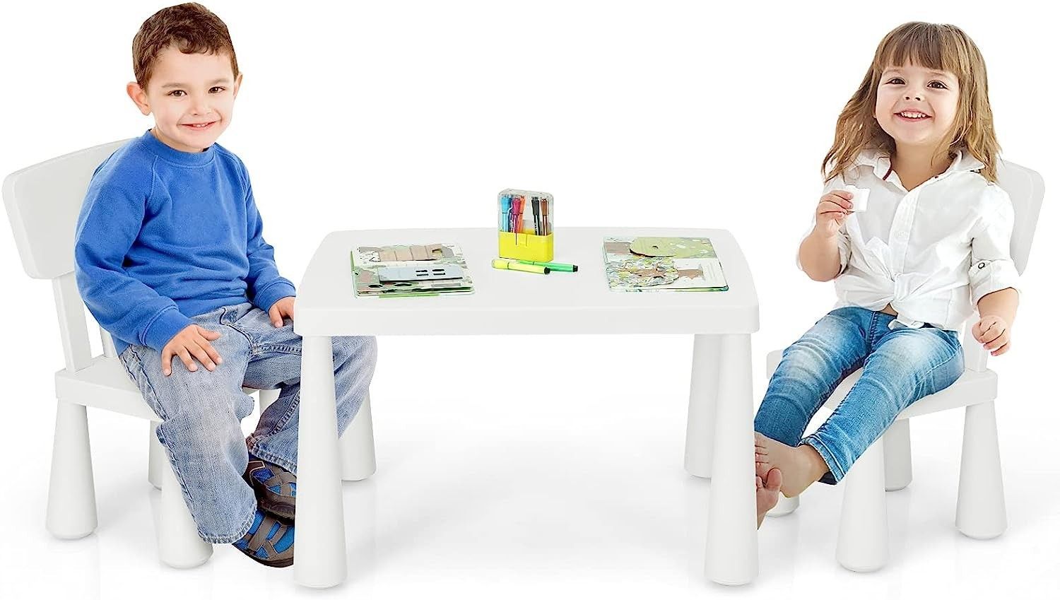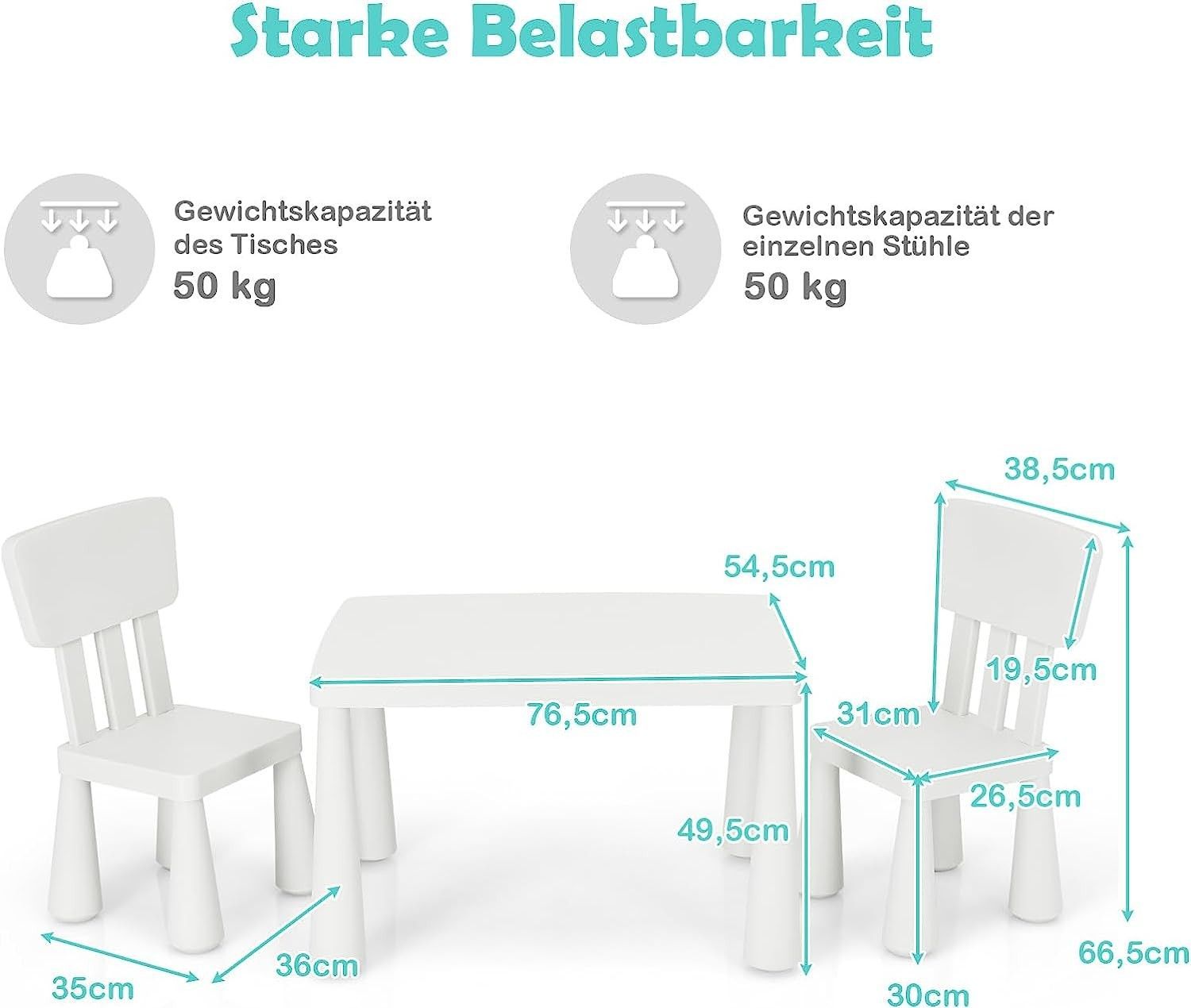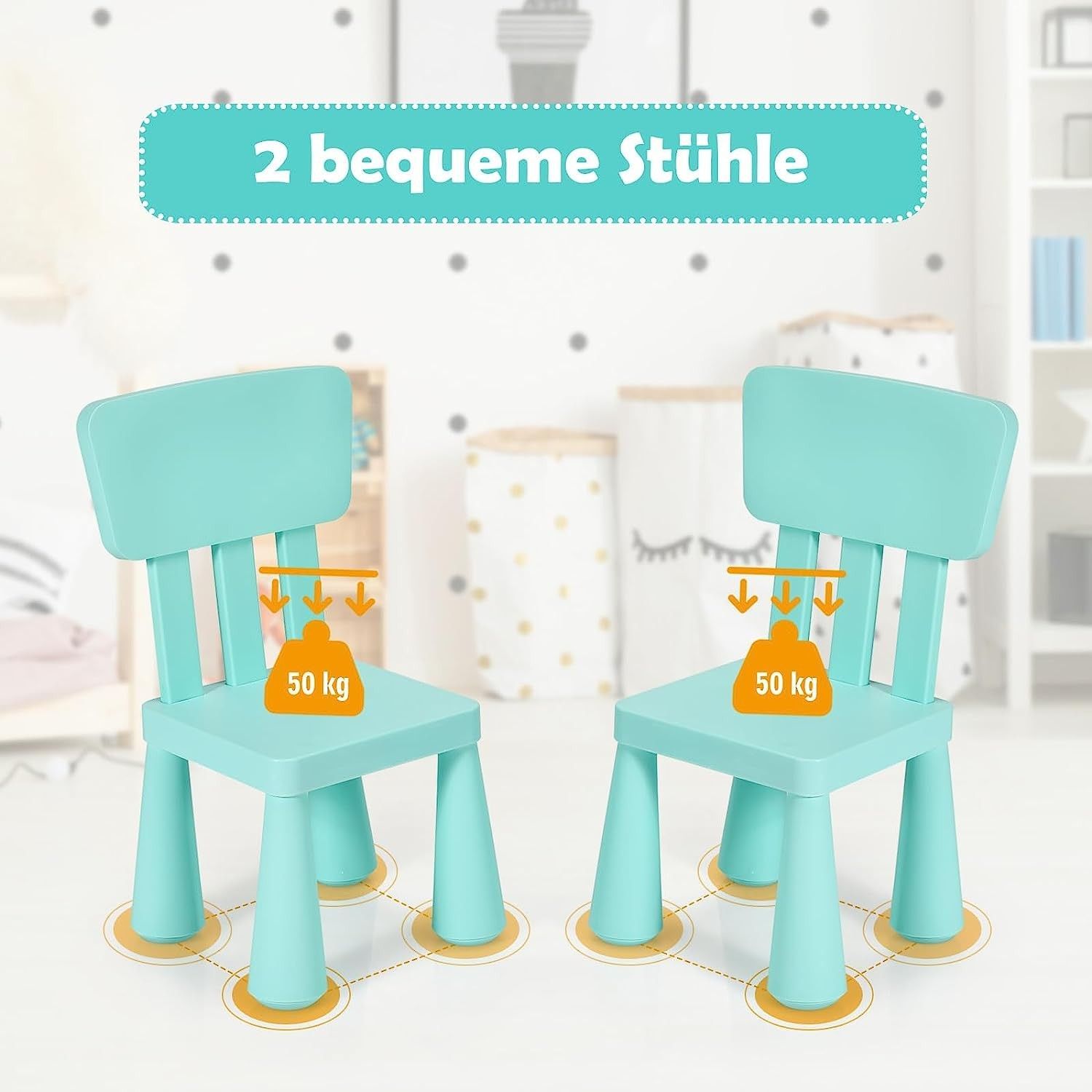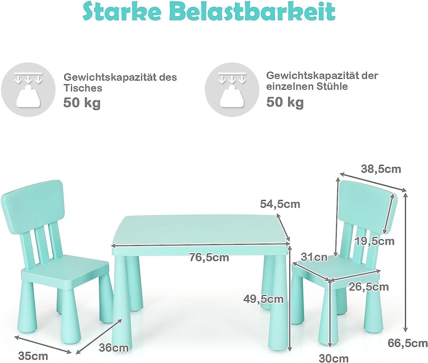 3 TLG. Kindersitzgruppe, Kindertischgruppe, Kindertisch mit 2 Stühlen aus Kunststoff