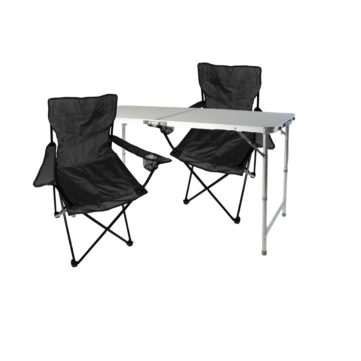 3-tlg. Schwarz Campingmöbel Set, Tisch mit Tragegriff und Stühle mit Tasche