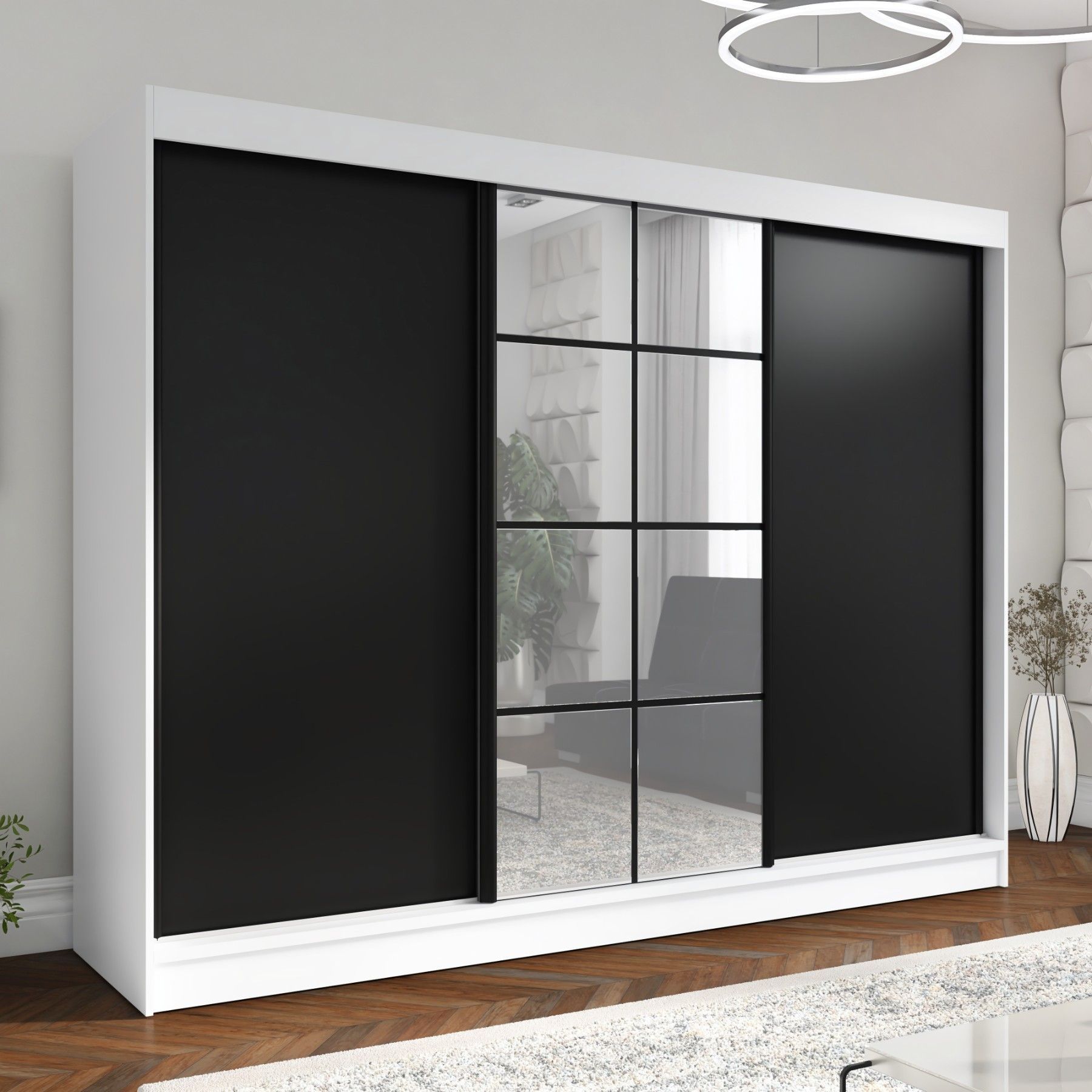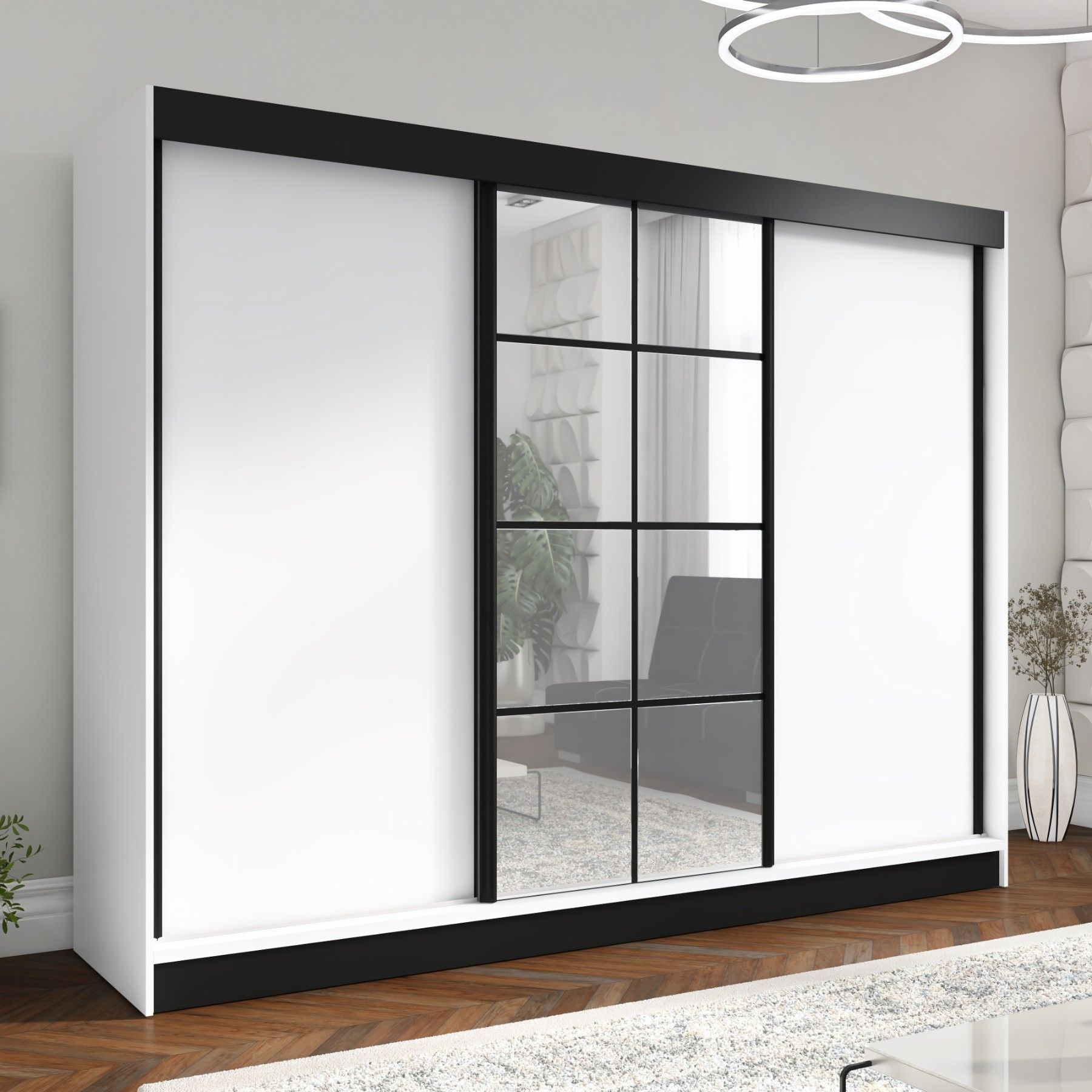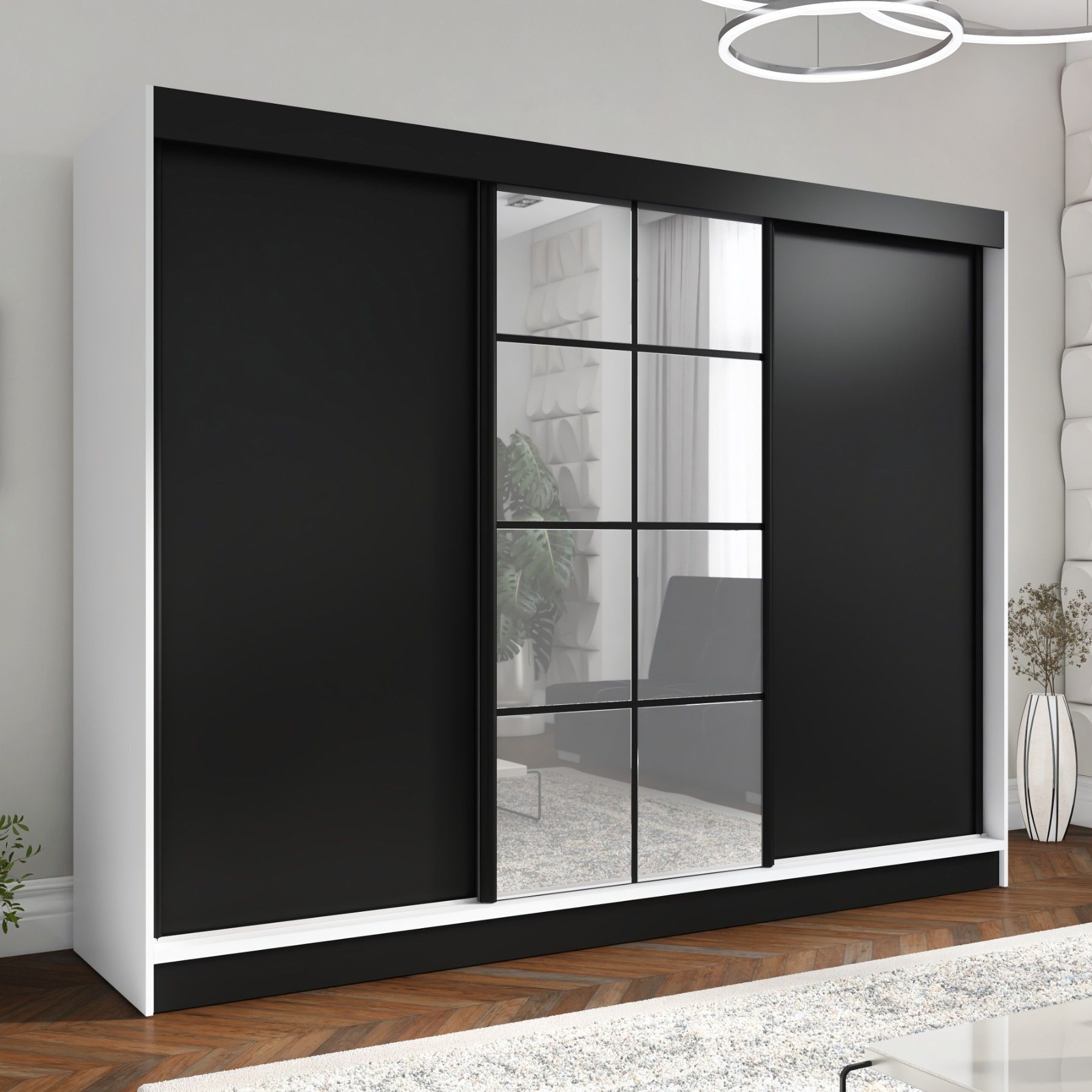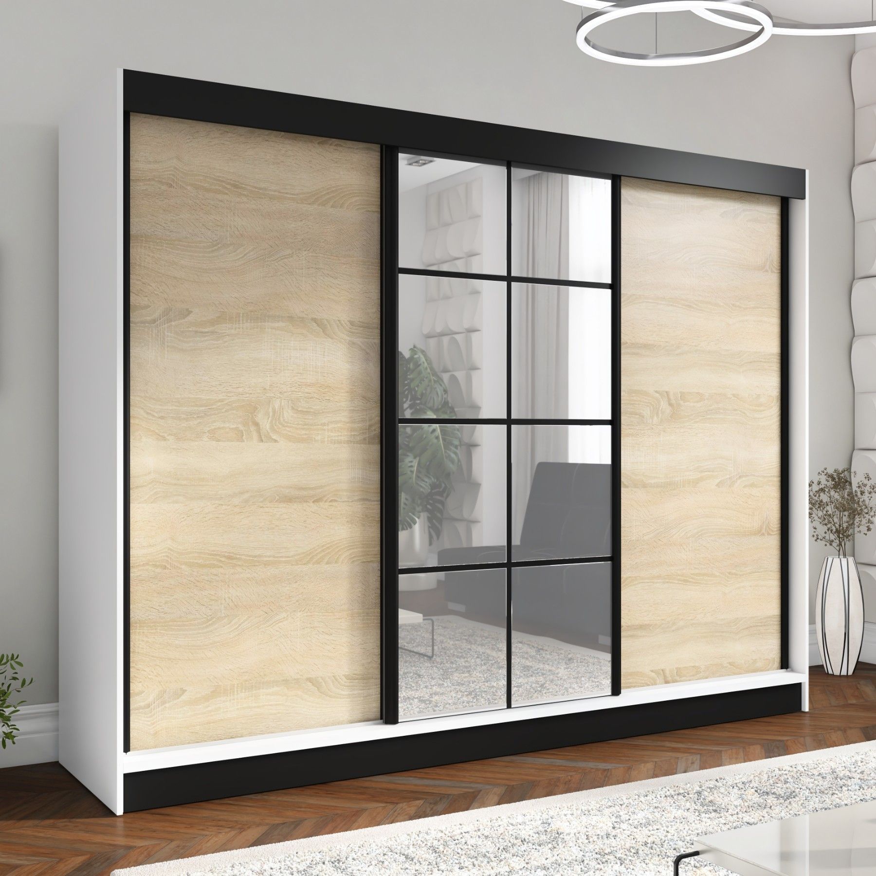3-türiger Kleiderschrank mit Spiegel, 4 Schubladen und Kleiderstangen -ORAVELLE 200cm