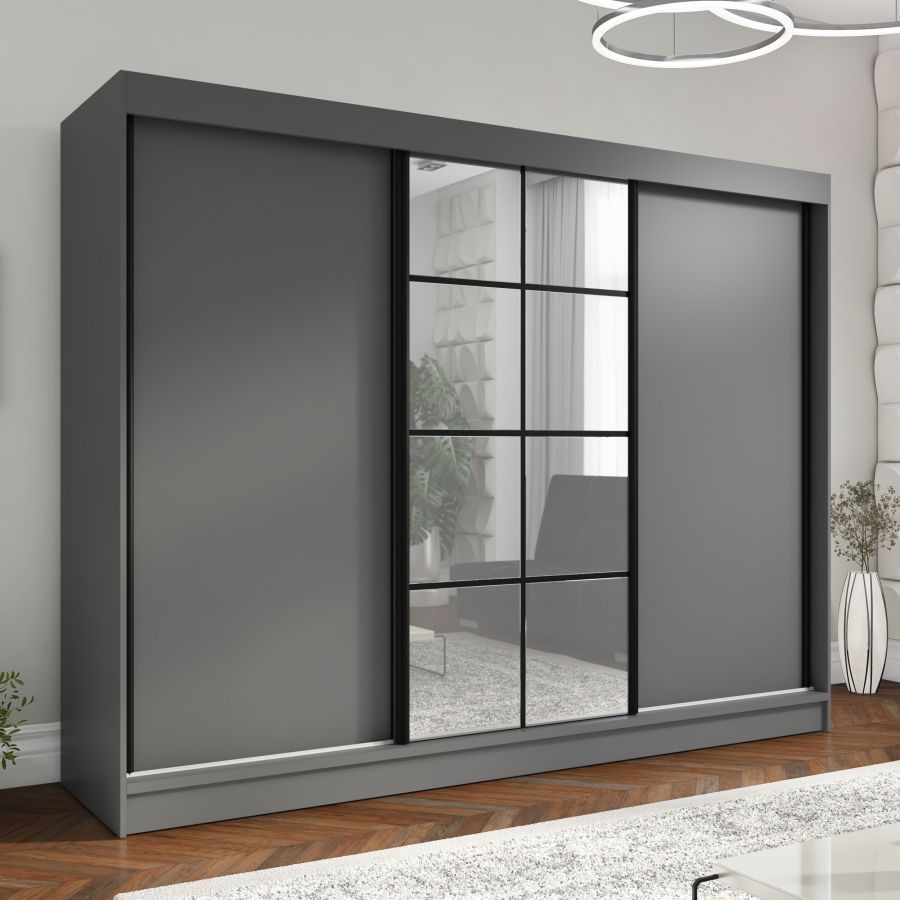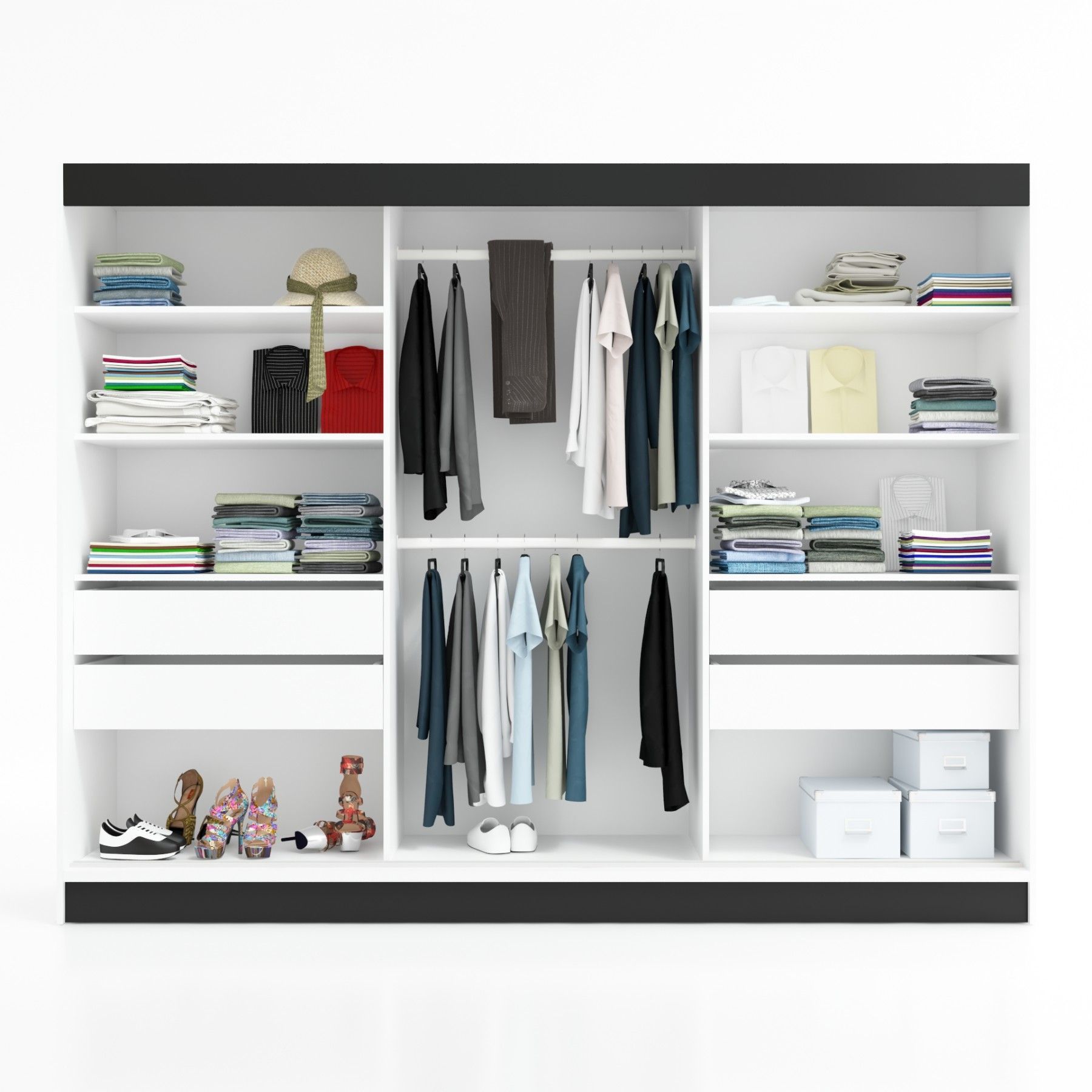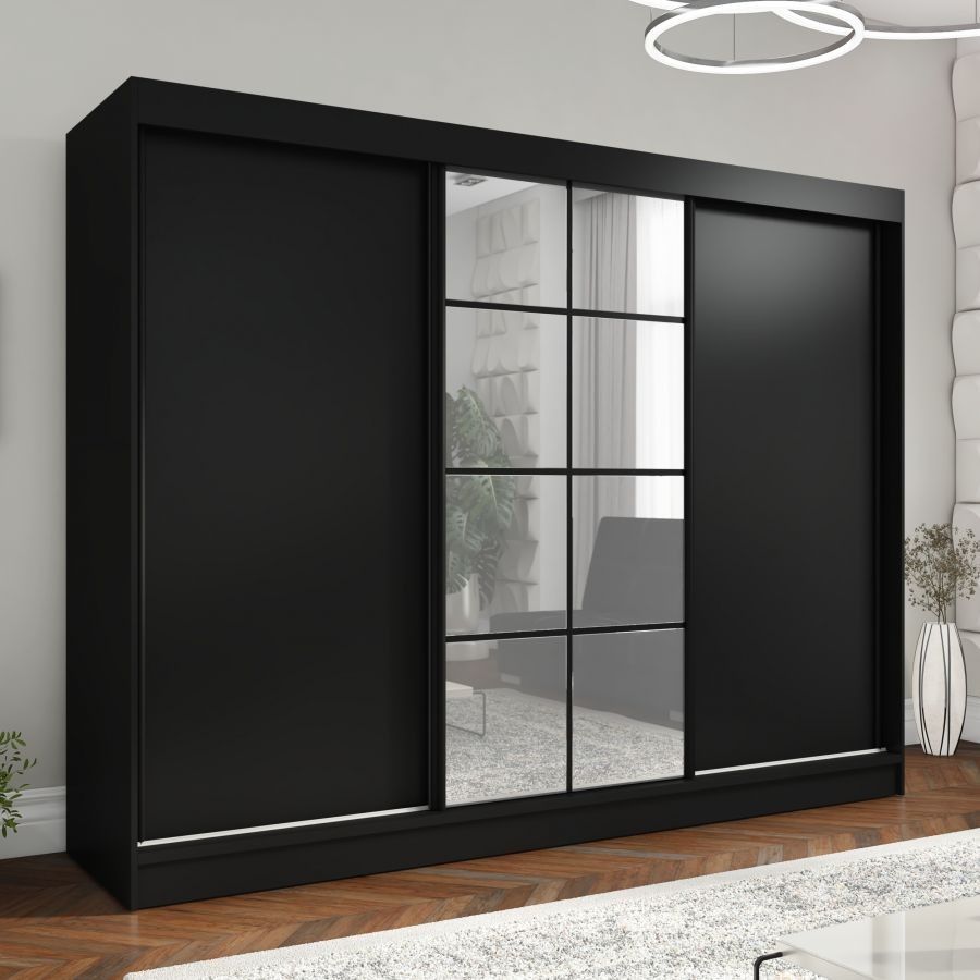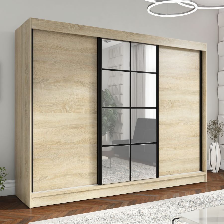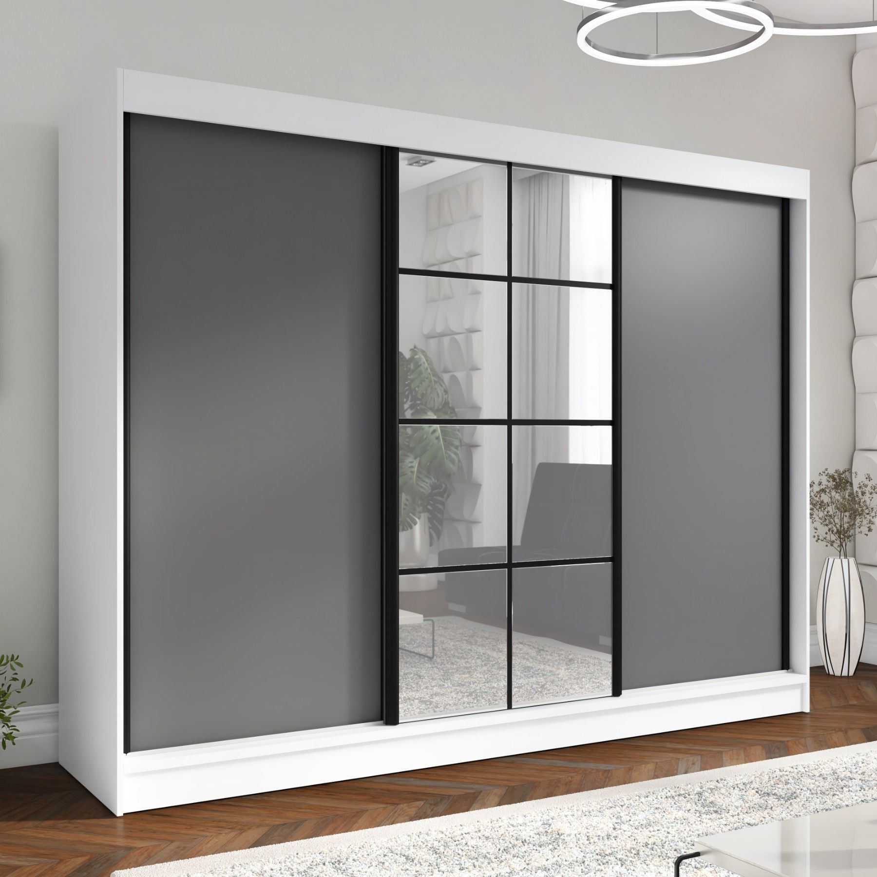 3-türiger Kleiderschrank mit Spiegel, 4 Schubladen und Kleiderstangen -ORAVELLE 200cm