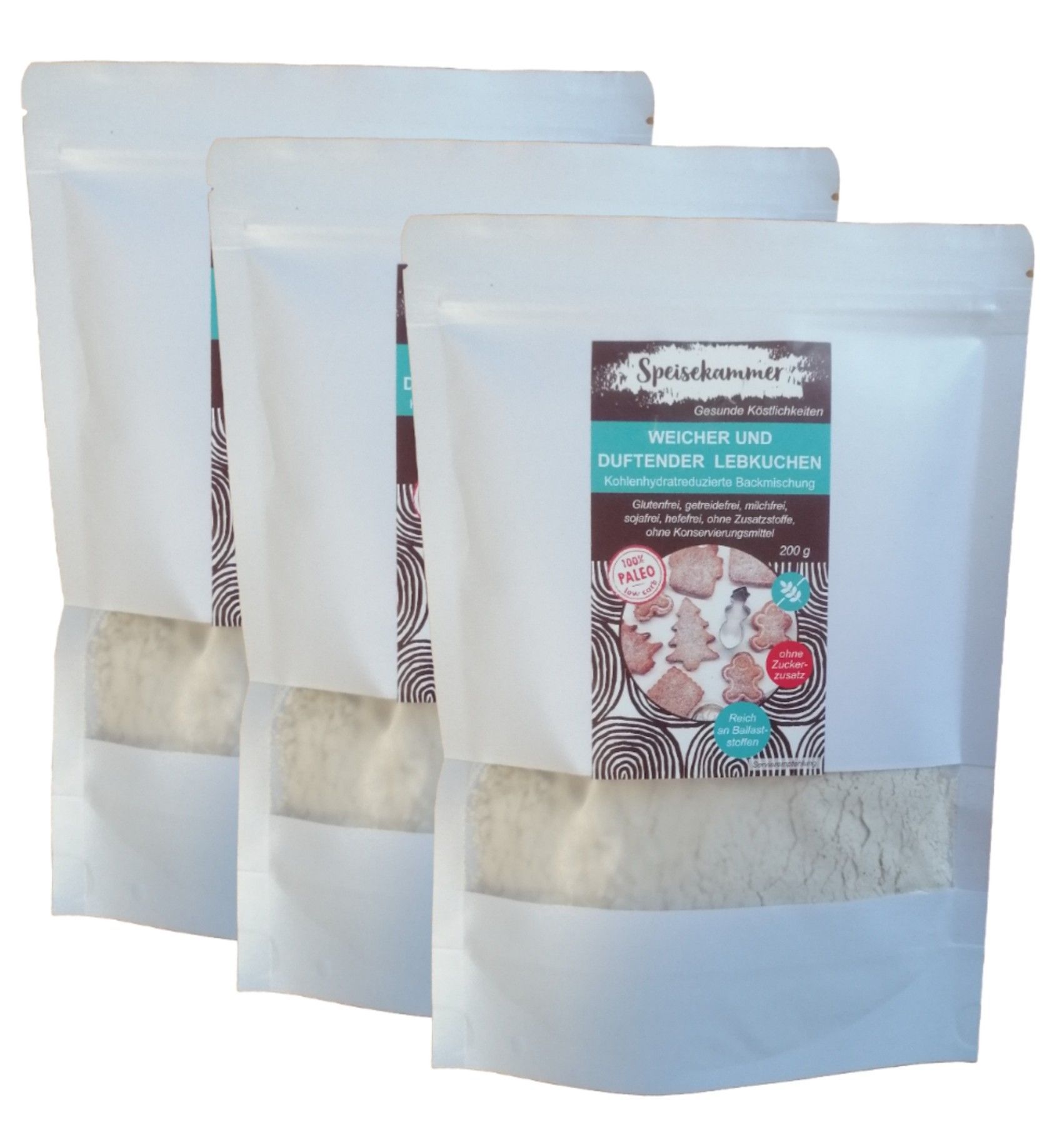 3 x 200g Lebkuchen Backmischung Gebäck Paleo Glutenfrei Ohne Zuckerzusatz