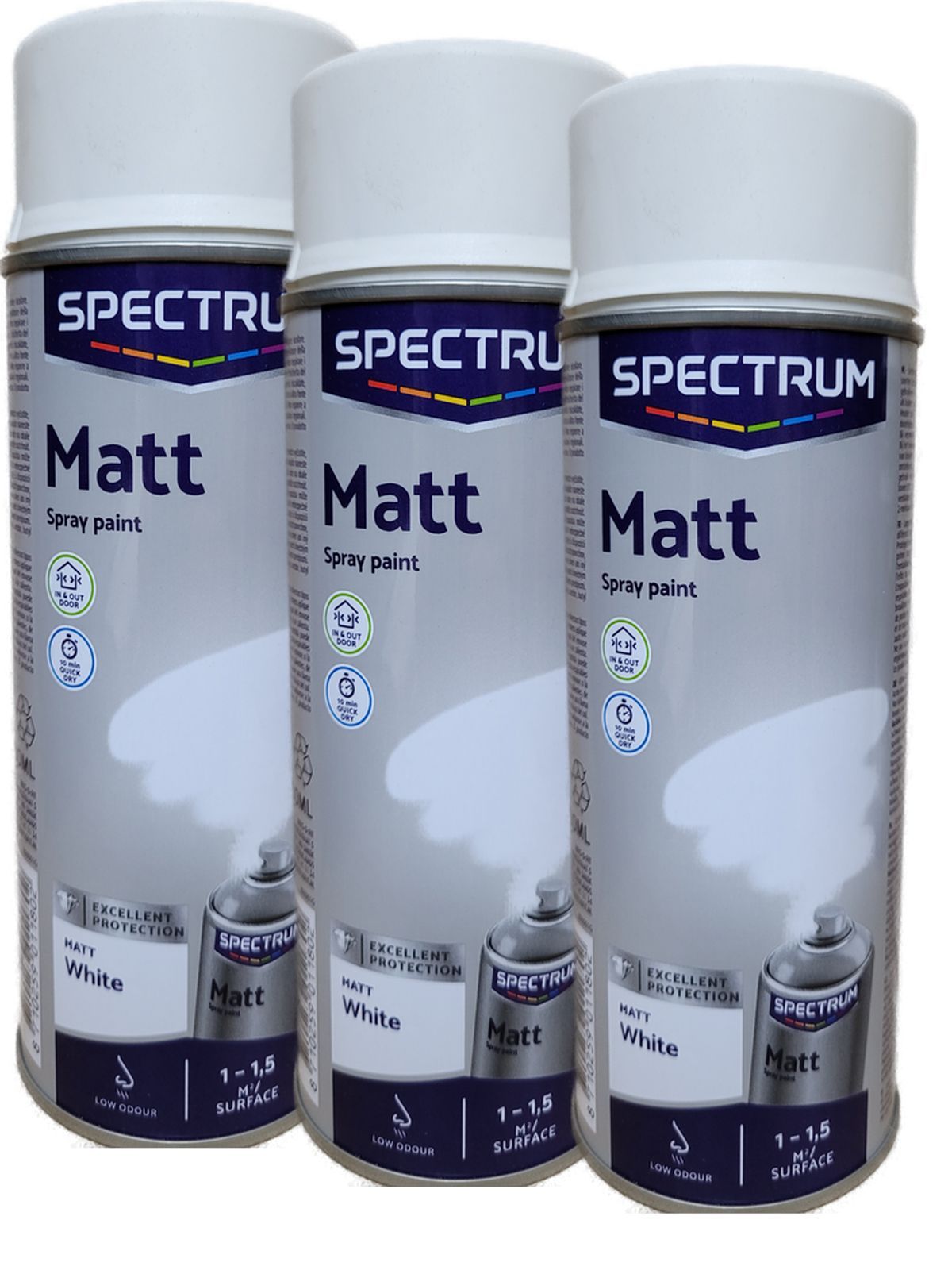 3 x 400ml Lackspray Sprühlack Lack Farbe Weiß Matt Weiss Spectrum Matt Dosen