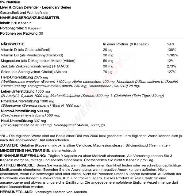 3 x 5% Nutrition Liver & Organ Defender - Legendary Series - 270 caps
