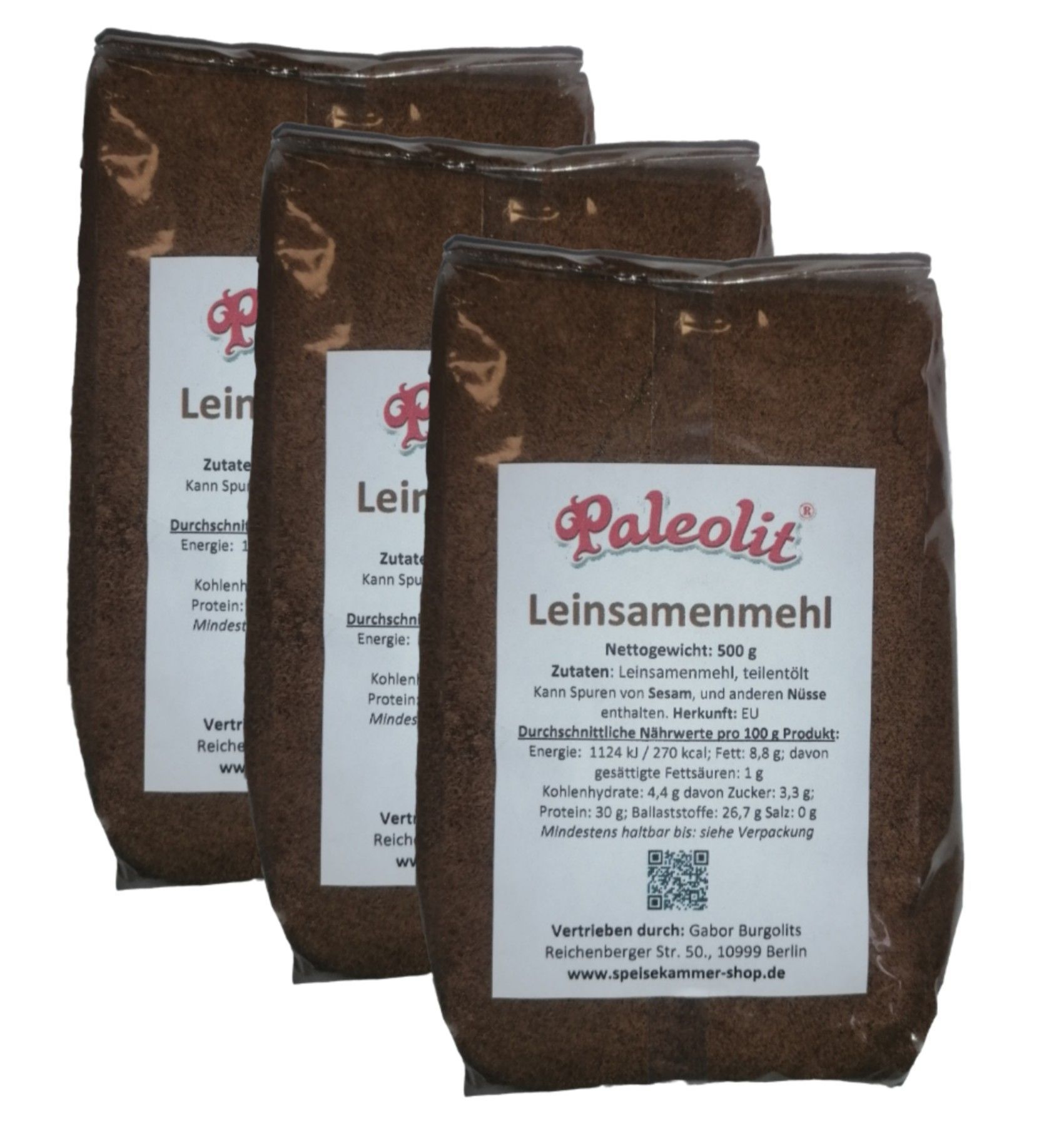 3 x 500g Leinsamenmehl teilentölt Glutenfrei Leinmehl Vegan