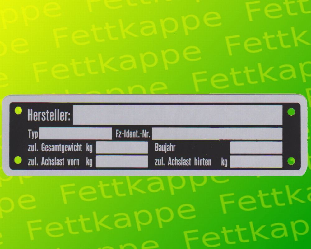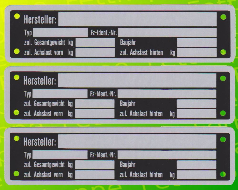 3 x Blanko Typenschild Anhängertypenschild Neutral Anhänger - Typ 5
