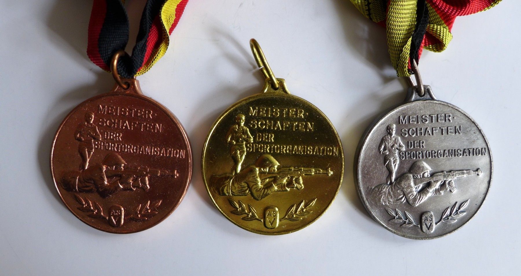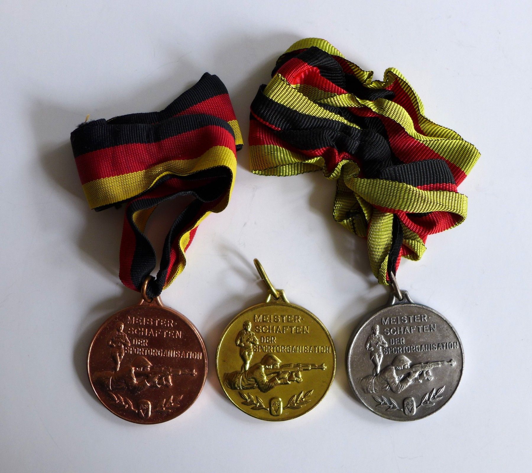 3 x DDR NVA ASV Medaillen Meisterschaften der Sportorganisation bronze silber gold
