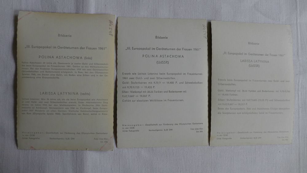 3 x DDR Sport Foto im AK Format 1961 Europapokal Geräteturnen Astachowa Latynina