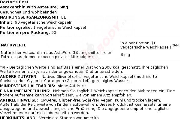 3 x Doctors Best Astaxanthin with AstaPure, 6mg - 90 veggie softgels