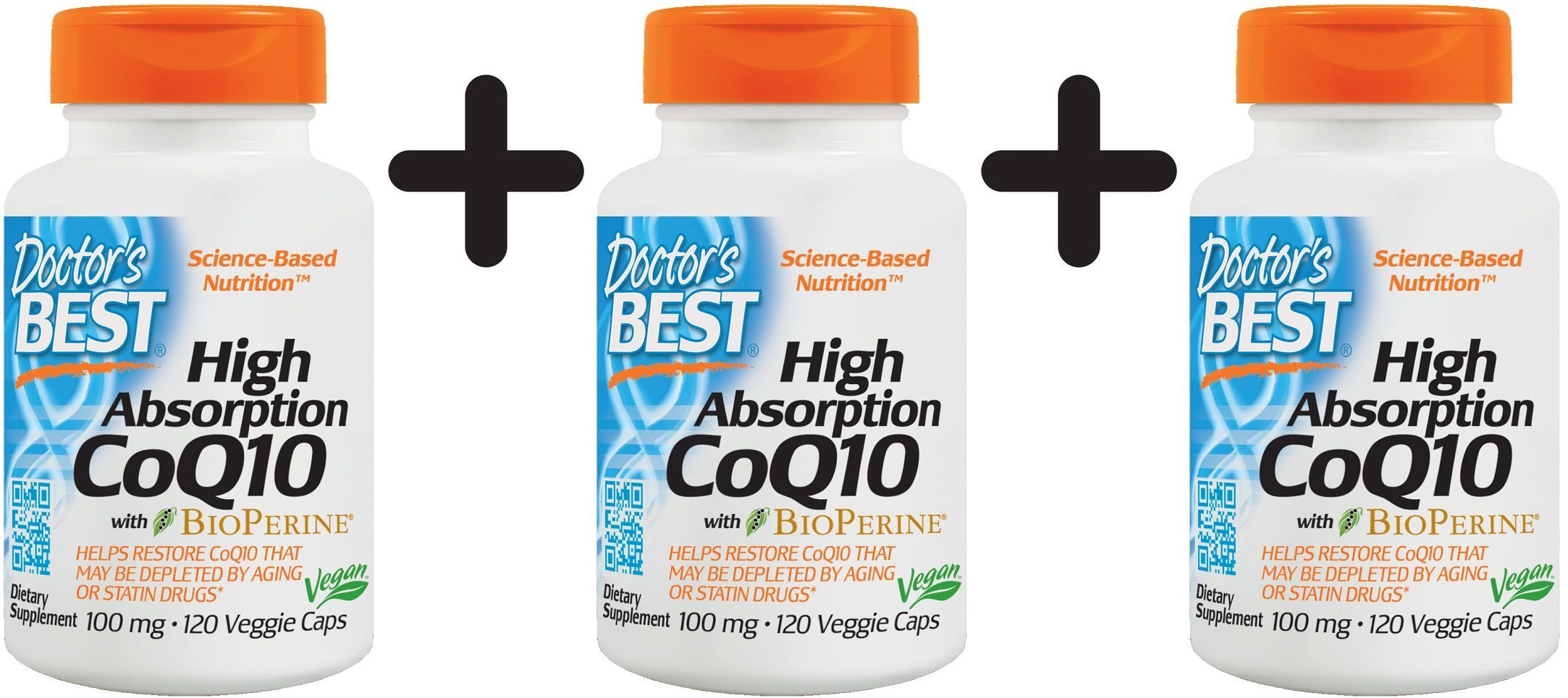 3 x Doctors Best High Absorption CoQ10 with BioPerine, 100mg - 120 vcaps