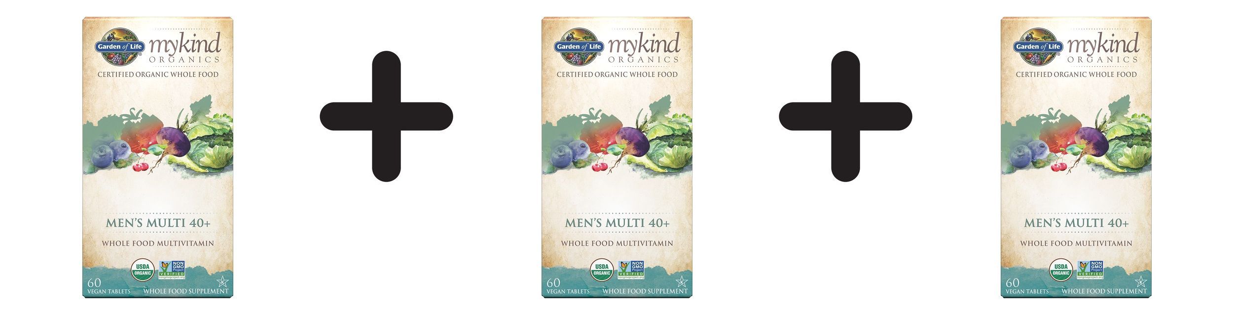 3 x Garden of Life Mykind Organics Men's Multi 40+ - 60 tabs
