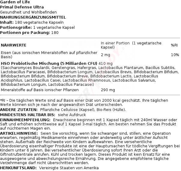 • 2 x Garden of Life Primal Defense Ultra - 180 vcaps