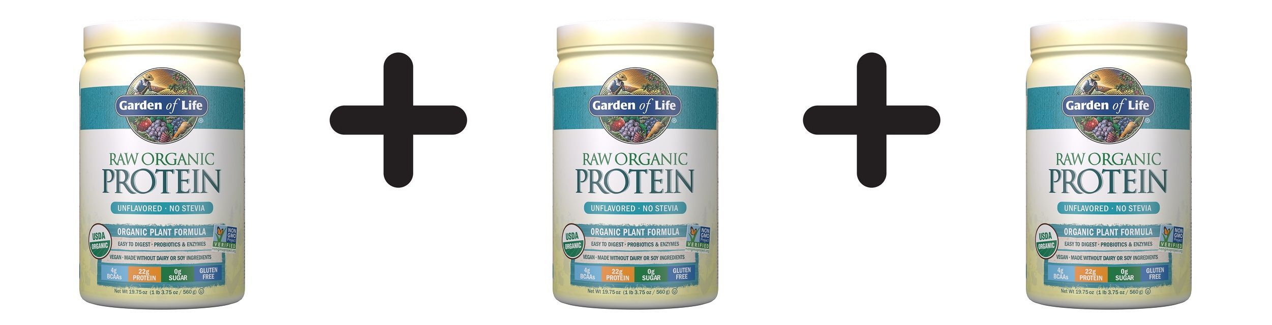 3 x Garden of Life RAW Organic Protein, Unflavored - 568g