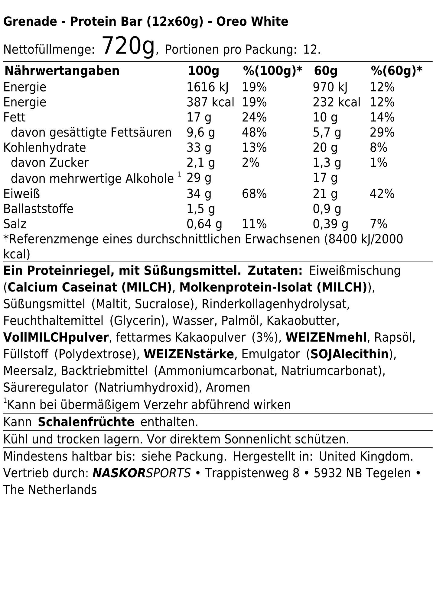 Grenade 3 x Grenade Protein Bar (12x60g) Oreo White