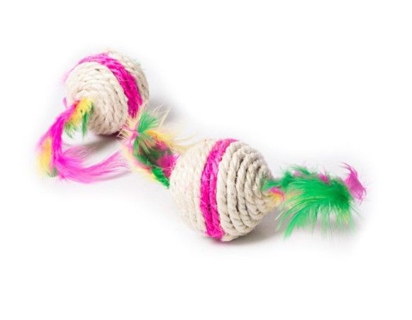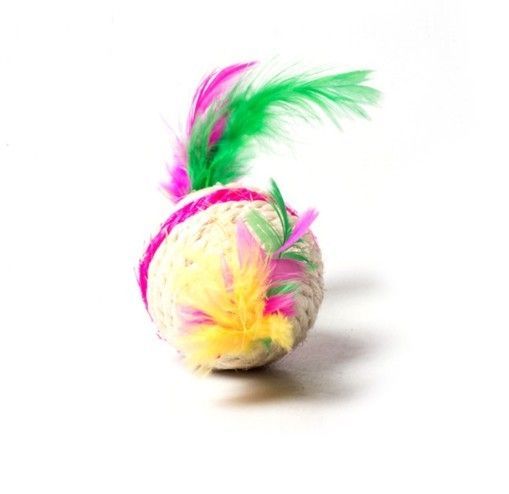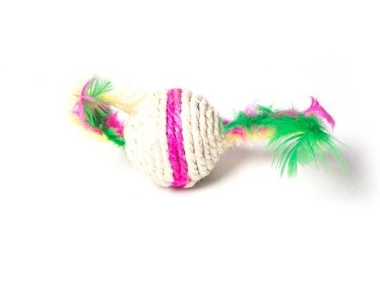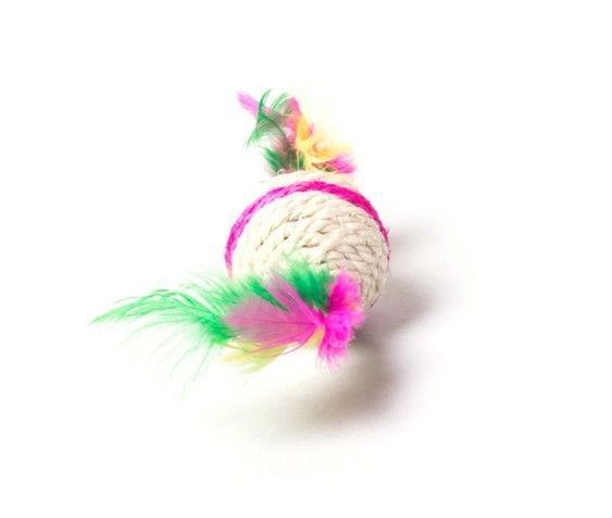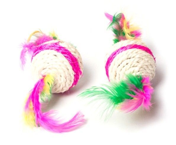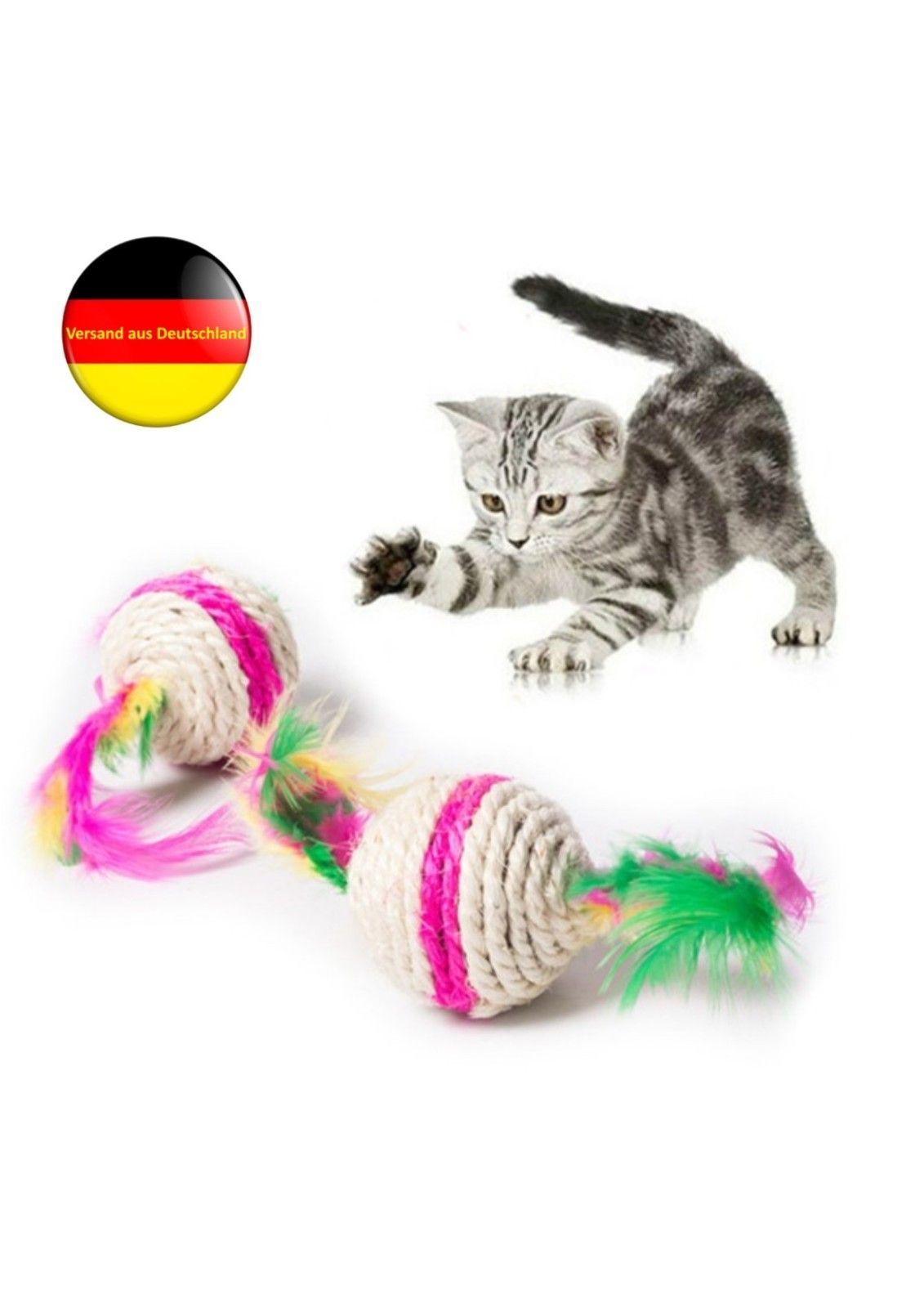 3 x Katze Kätzchen Spielball mit Federn aus Sisal Kratzen Ball Spielzeug