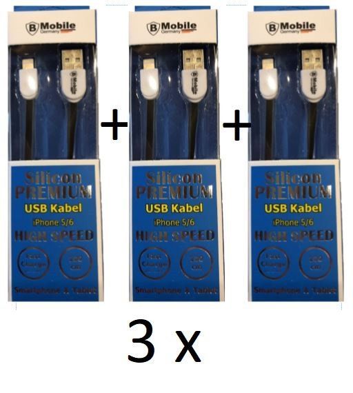 3 x Ladekabel 1m Apple iPhone 5 5S 6 6S 7 8 11 X XS XR 11 Plus Silikon Highspeed