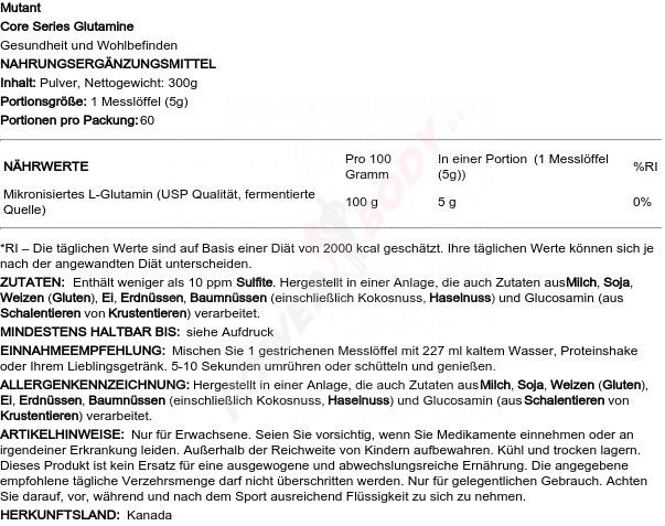 • Mutant Mutant Core Series L-Glutamine (300g)