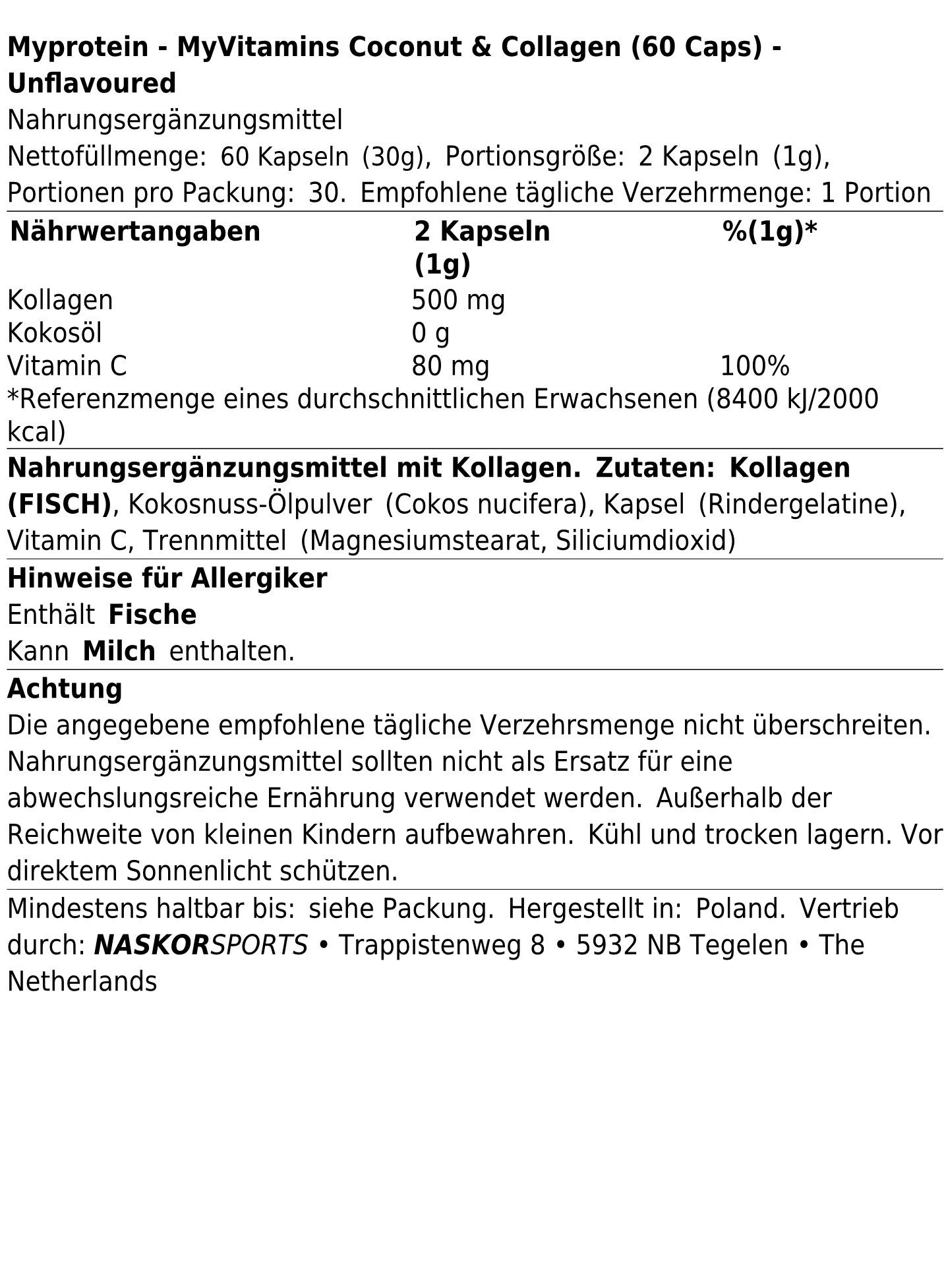 Myprotein 3 x Myprotein MyVitamins Coconut and Collagen (60 Caps)