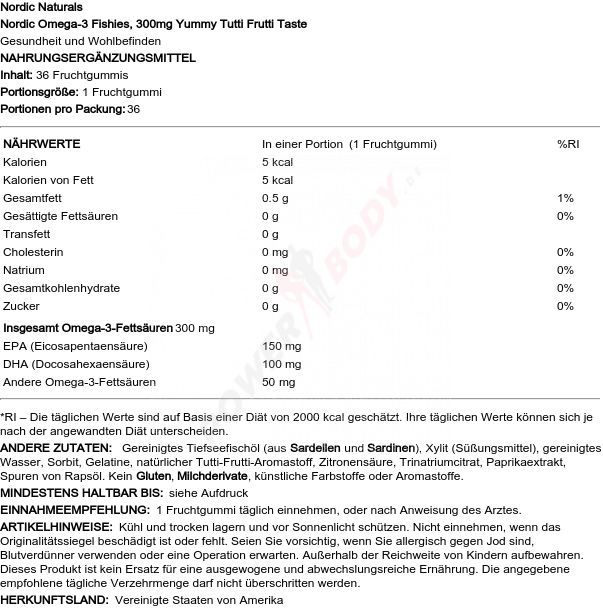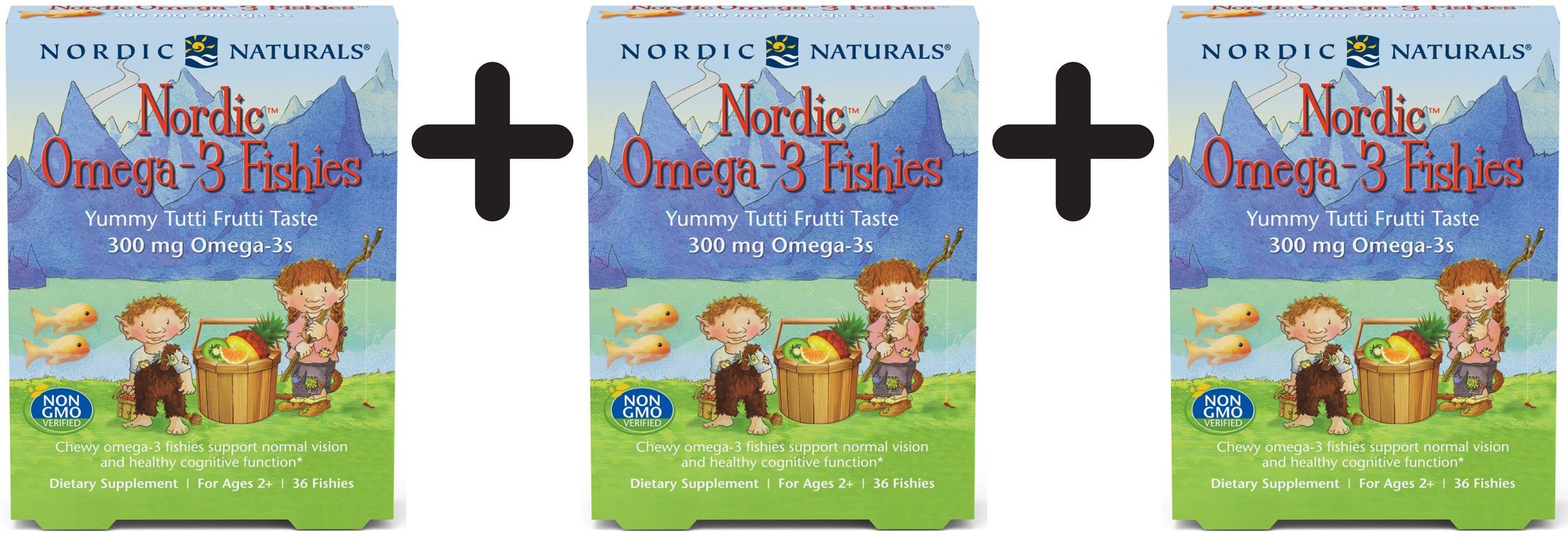 3 x Nordic Naturals Nordic Omega-3 Fishies, 300mg Yummy Tutti Frutti Taste - 36 fishi