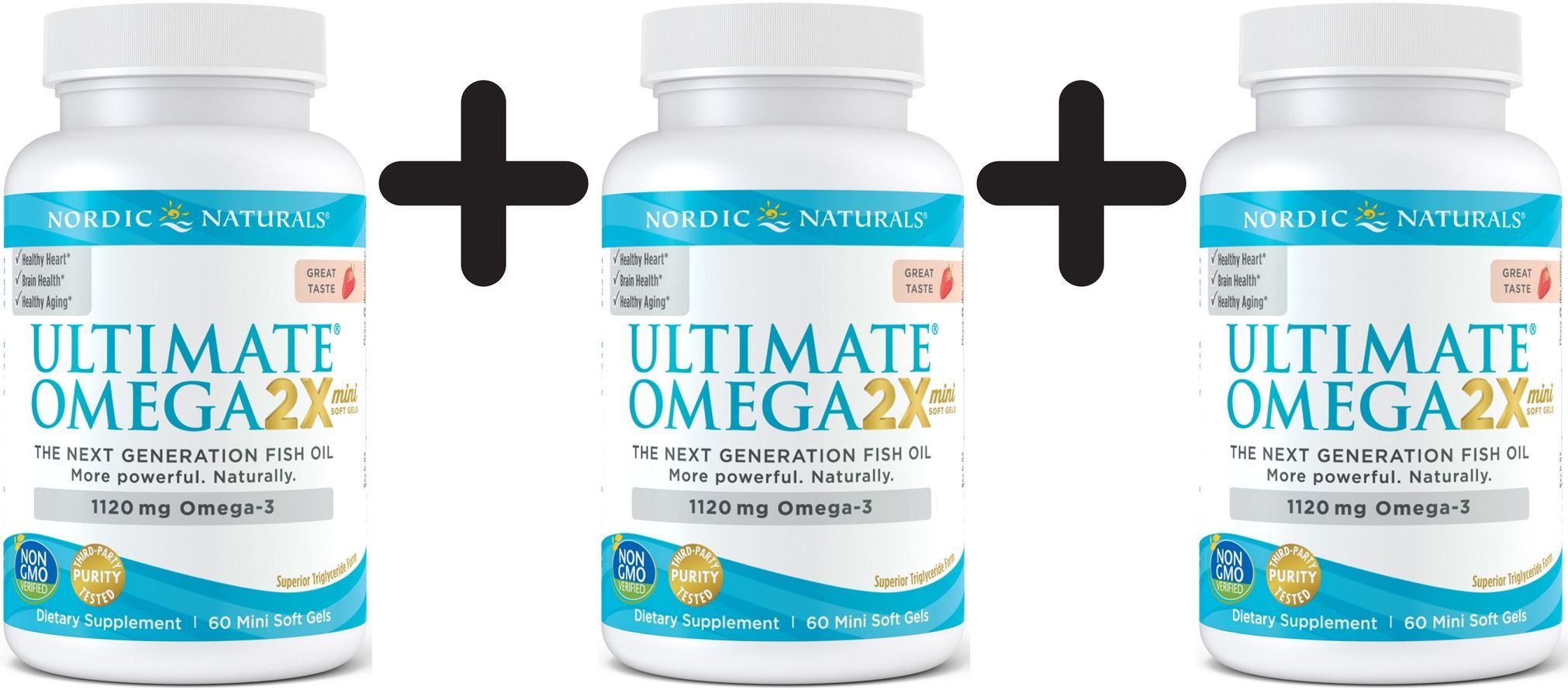3 x Nordic Naturals Ultimate Omega 2X Mini, 1120mg Strawberry - 60 mini softgels