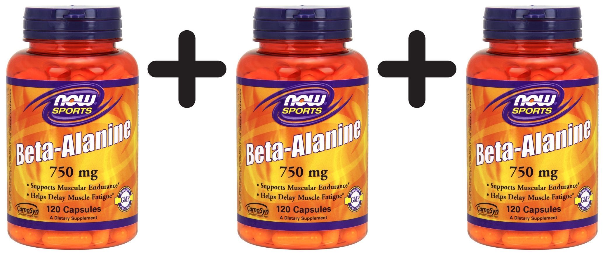 NOW Foods 3 x NOW Foods Beta Alanine, 750mg (Caps) - 120 caps