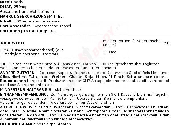 NOW Foods 3 x NOW Foods DMAE, 250mg - 100 vcaps