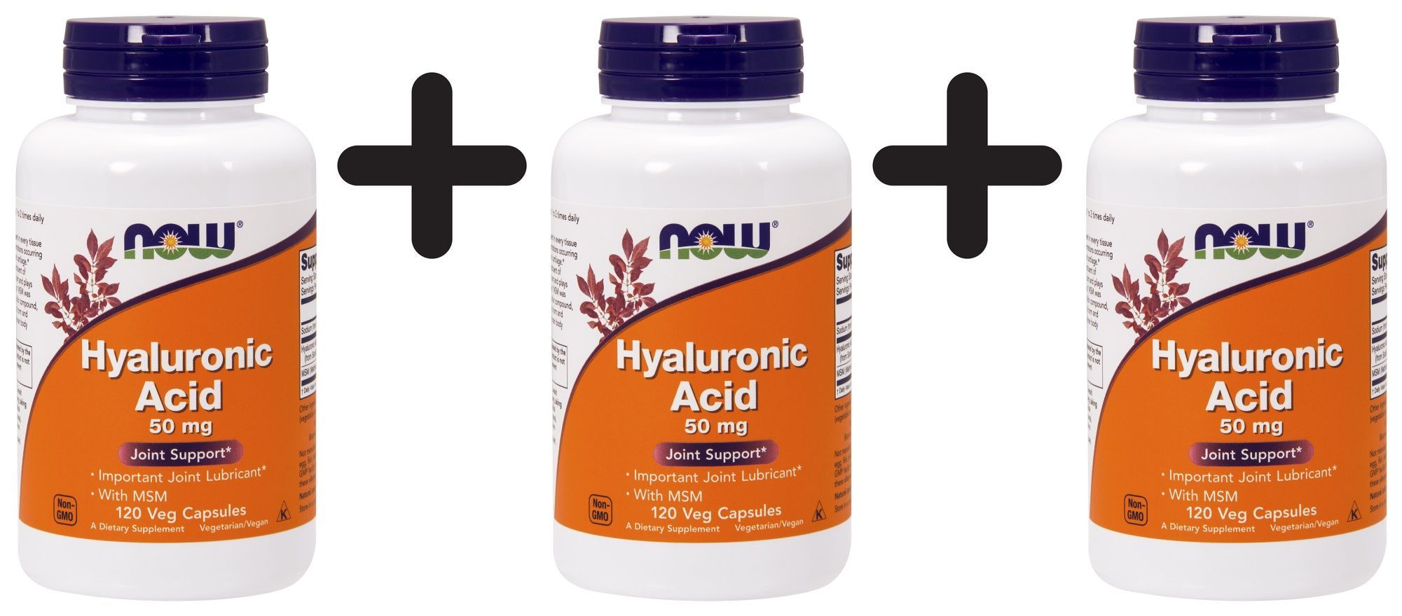 NOW Foods 3 x NOW Foods Hyaluronic Acid with MSM, 50mg - 120 vcaps