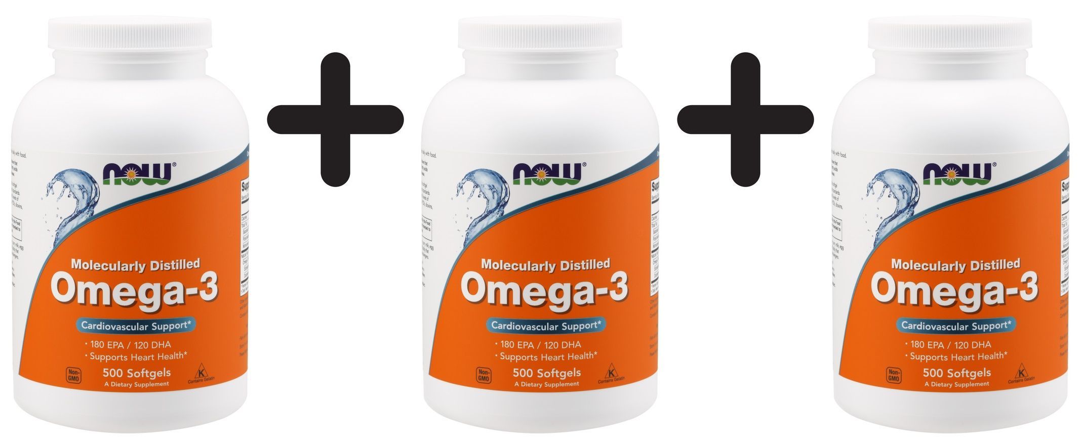 NOW Foods 3 x NOW Foods Omega-3 Molecularly Distilled Fish Oil - 500 softgels