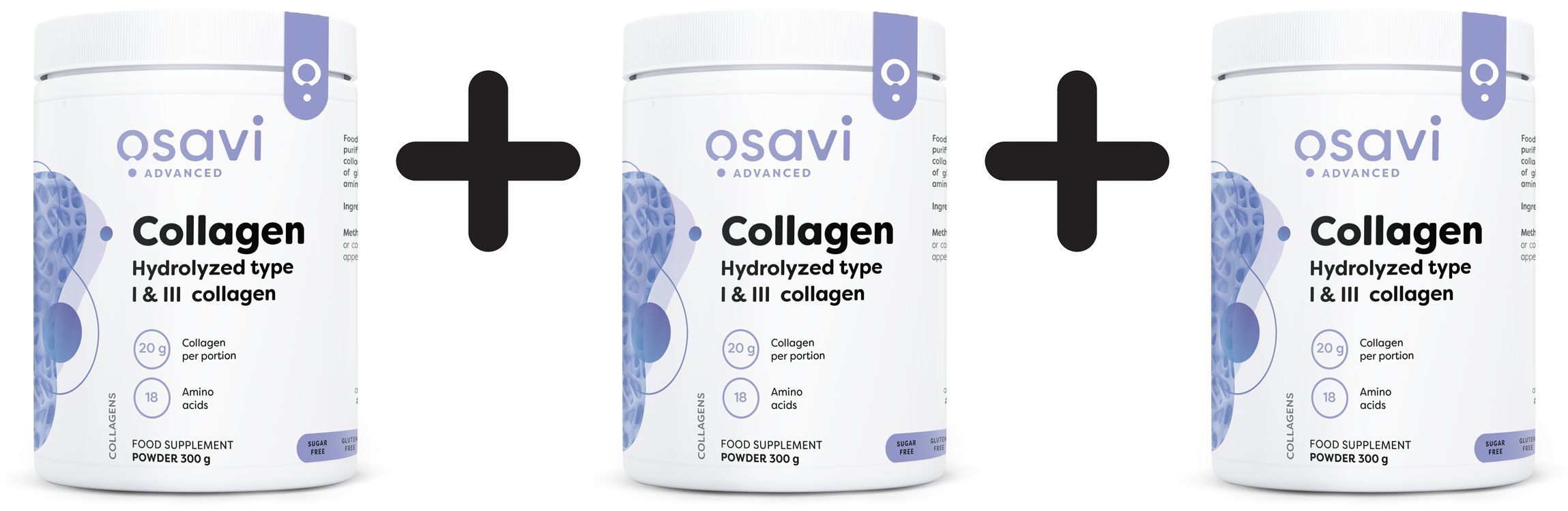 3 x Osavi Collagen Type 1 and 3, Powder - 300g