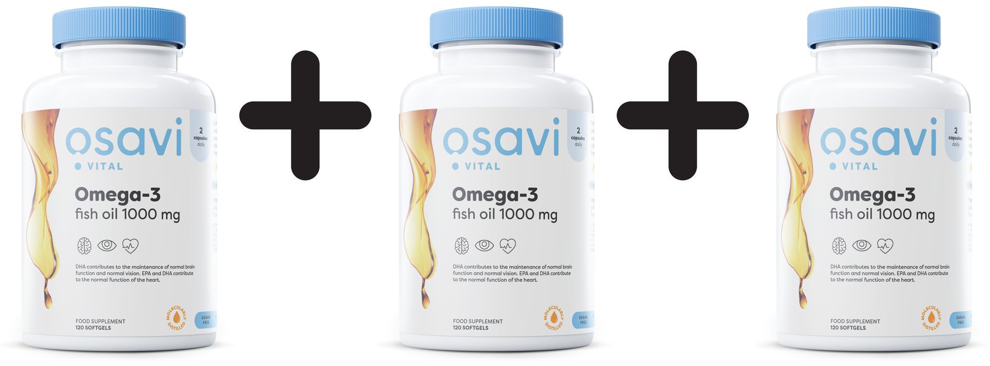 3 x Osavi Omega-3 Fish Oil, 1000mg, Lemon - 120 softgels