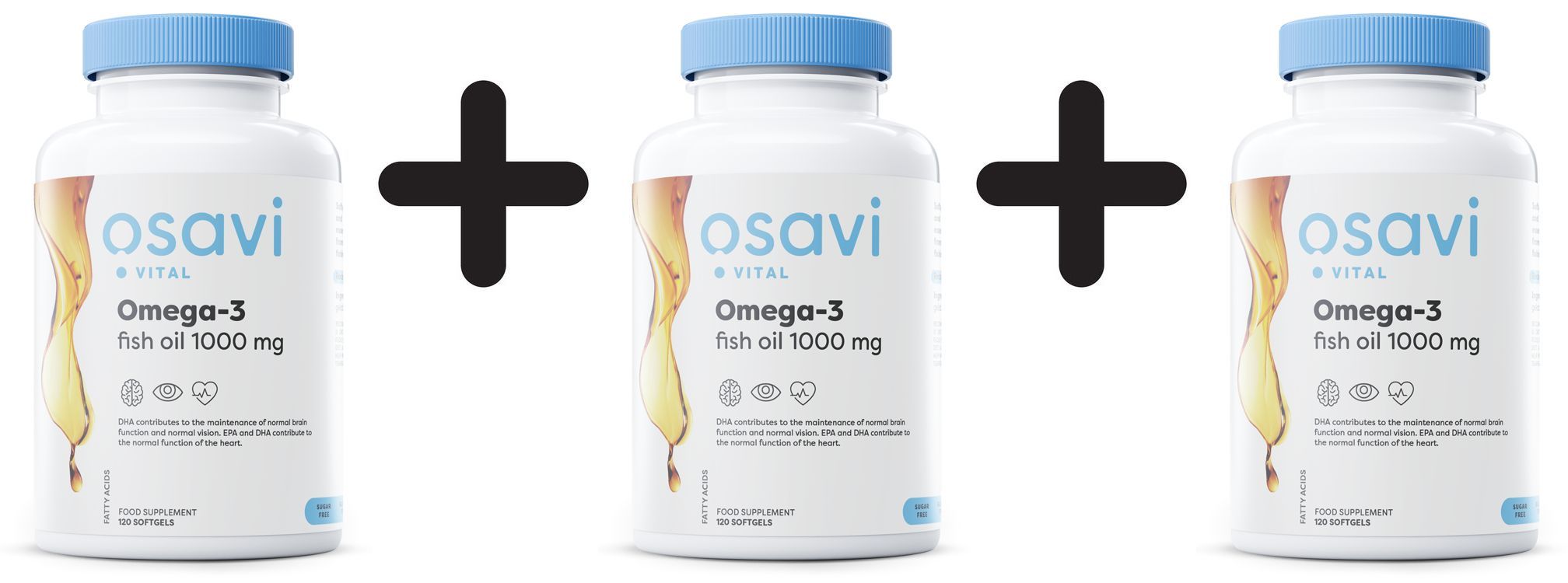 3 x Osavi Omega-3 Fish Oil, 1000mg (Unflavoured) - 120 softgels