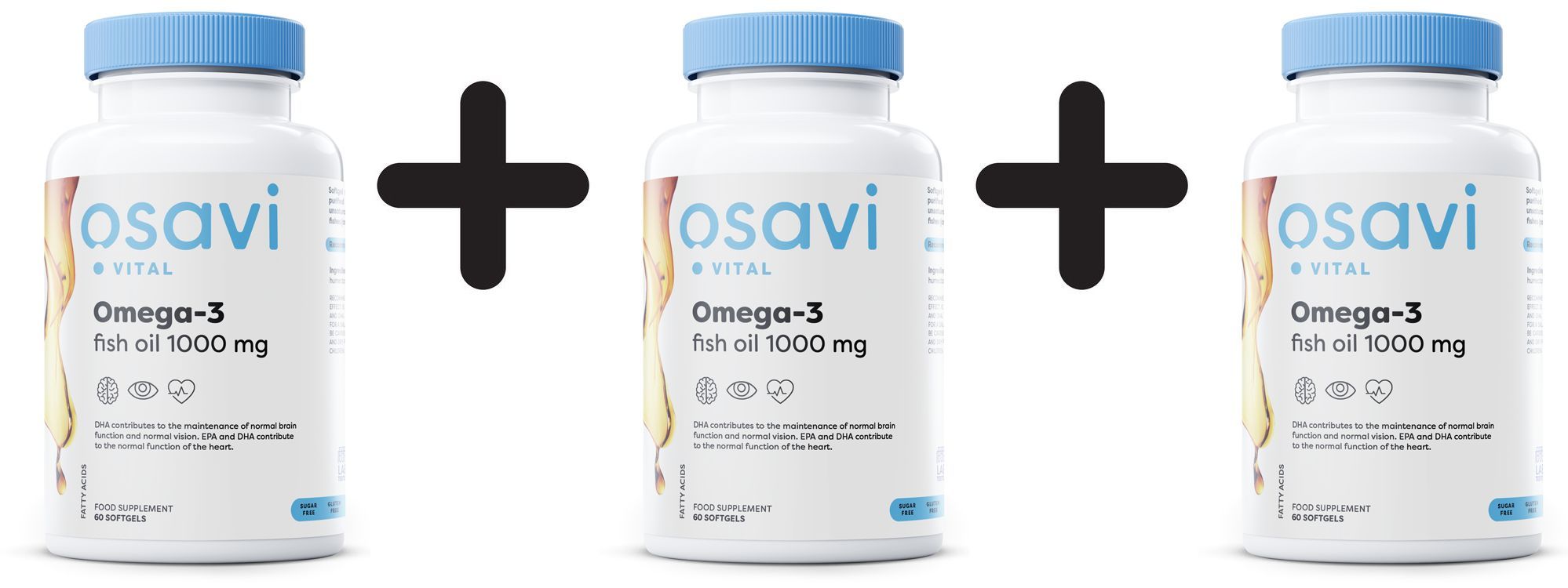 3 x Osavi Omega-3 Fish Oil, 1000mg (Unflavoured) - 60 softgels