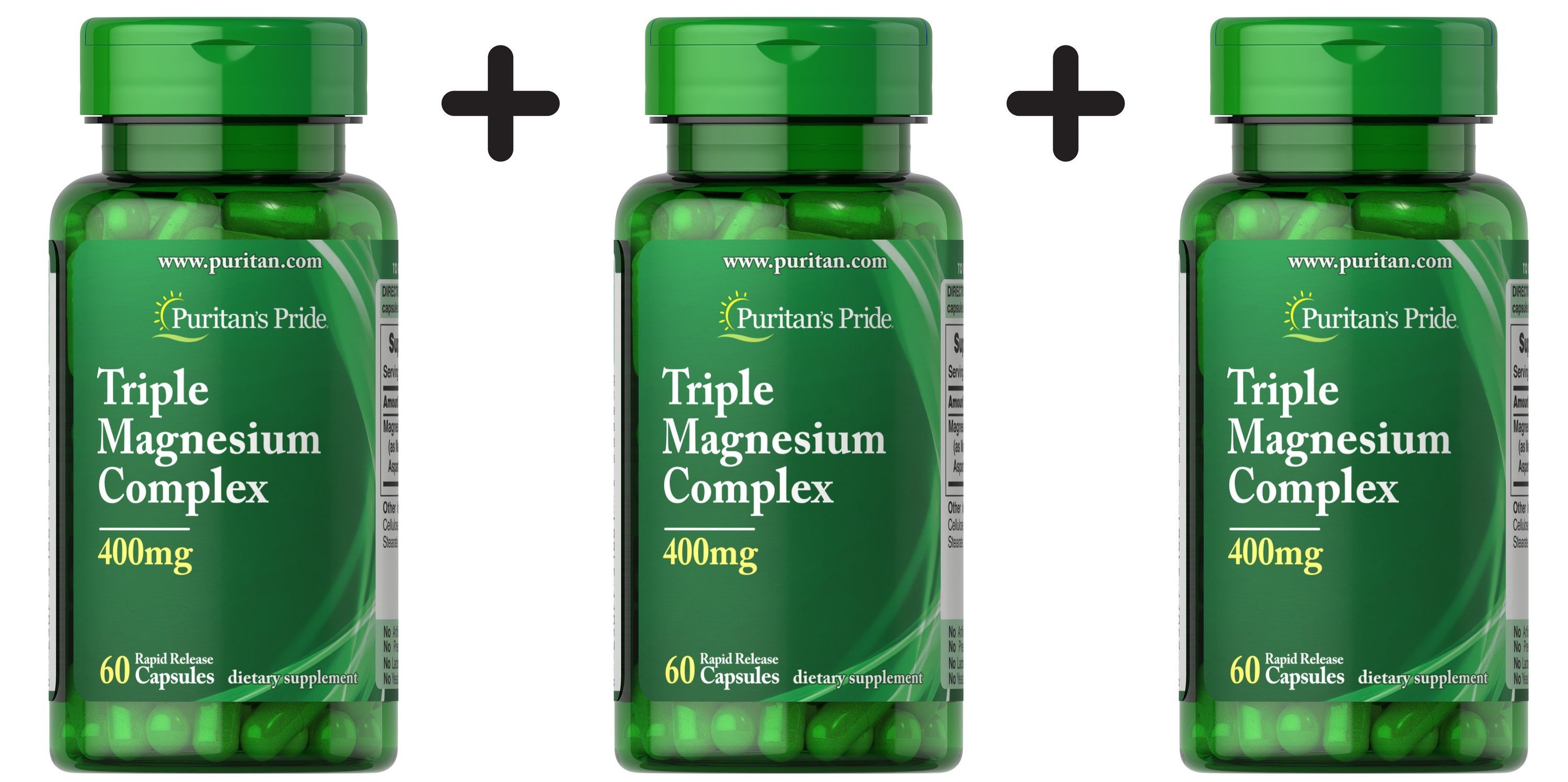 3 x Puritans Pride Triple Magnesium Complex, 400 mg - 60 caps