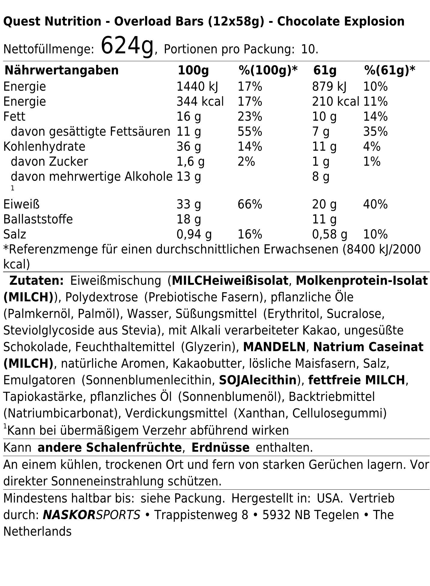 3 x Quest Nutrition Overload Bars (12x58g) Chocolate Explosion