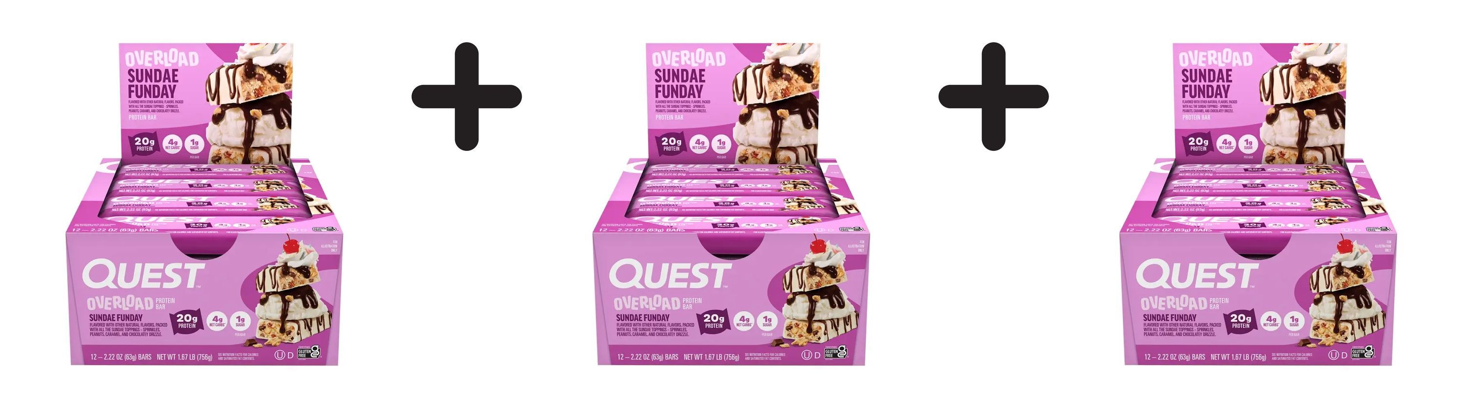 3 x Quest Nutrition Overload Bars (12x58g) Sundae Funday