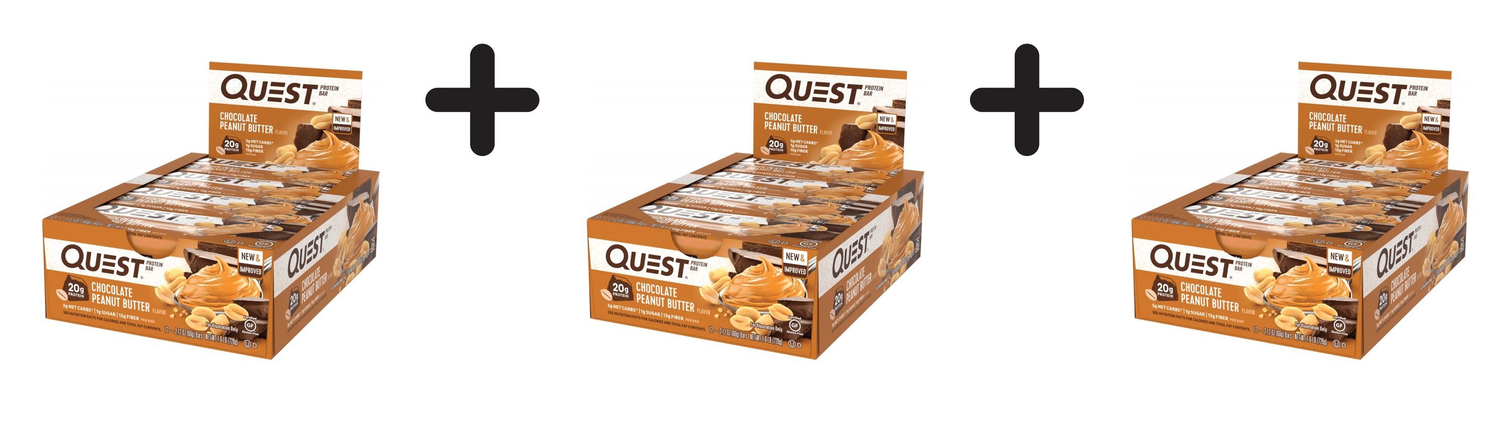 3 x Quest Nutrition Quest Bars (12x60g) Chocolate Peanut Butter