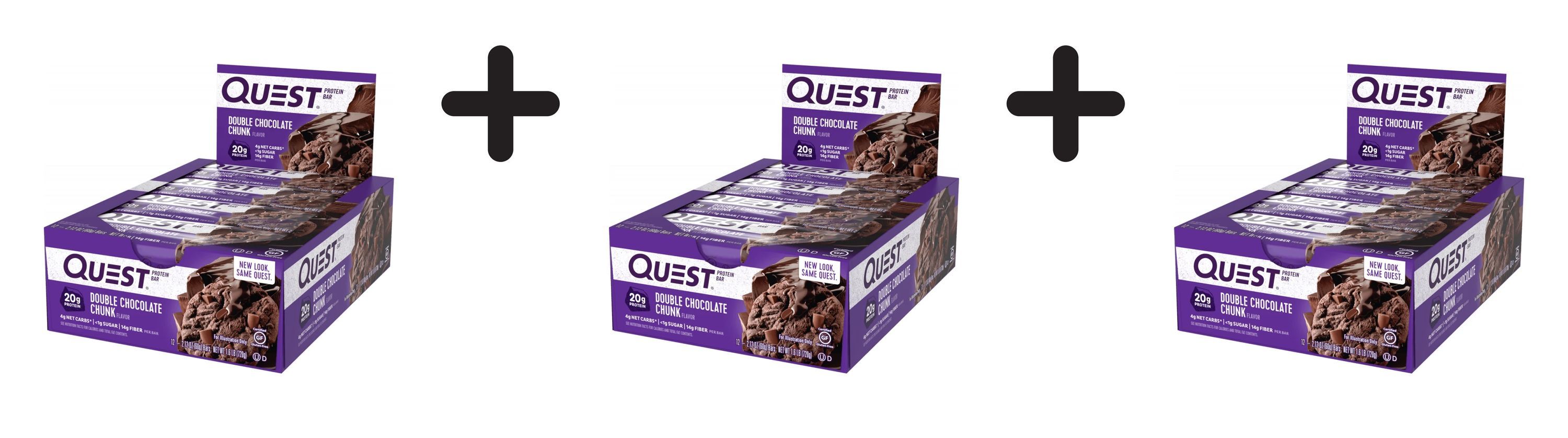 3 x Quest Nutrition Quest Bars (12x60g) Double Chocolate Chunk