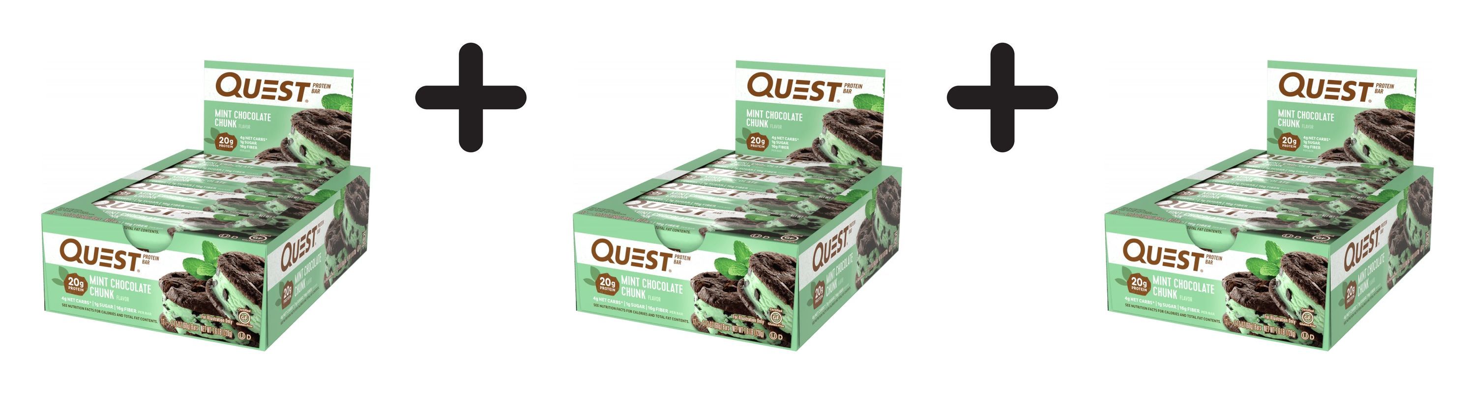 3 x Quest Nutrition Quest Bars (12x60g) Mint Chocolate Chunk