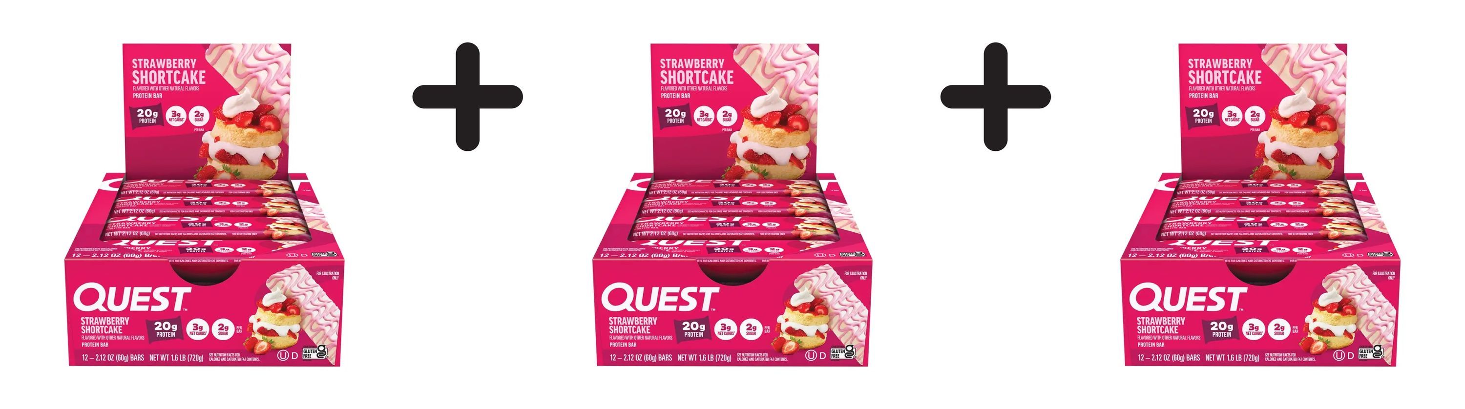 3 x Quest Nutrition Quest Bars (12x60g) Strawberry Shortcake