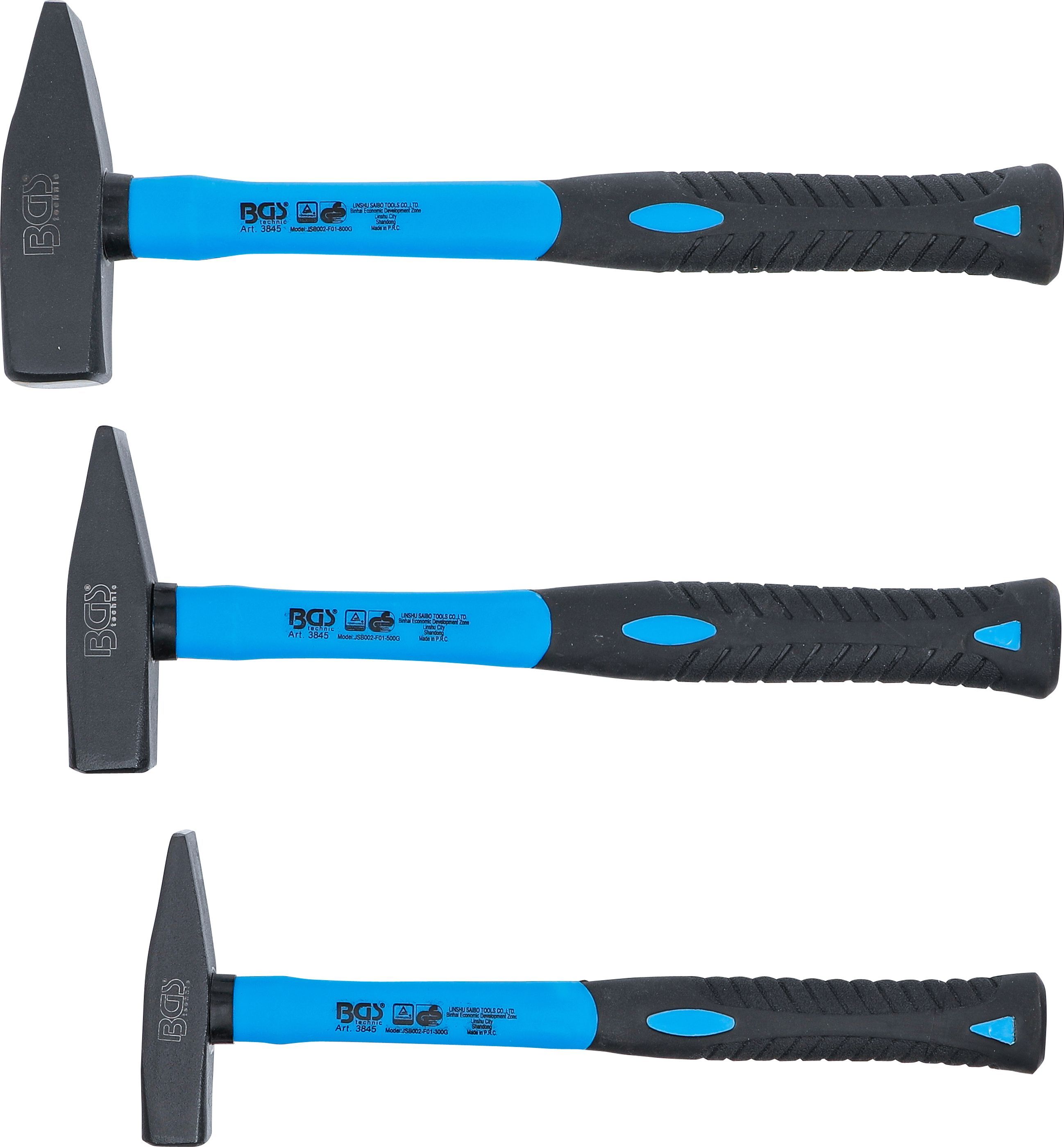 BGS 3 x Schlosserhammer Set 300g 500g 800g mit Fiberglasstiel DIN 1041