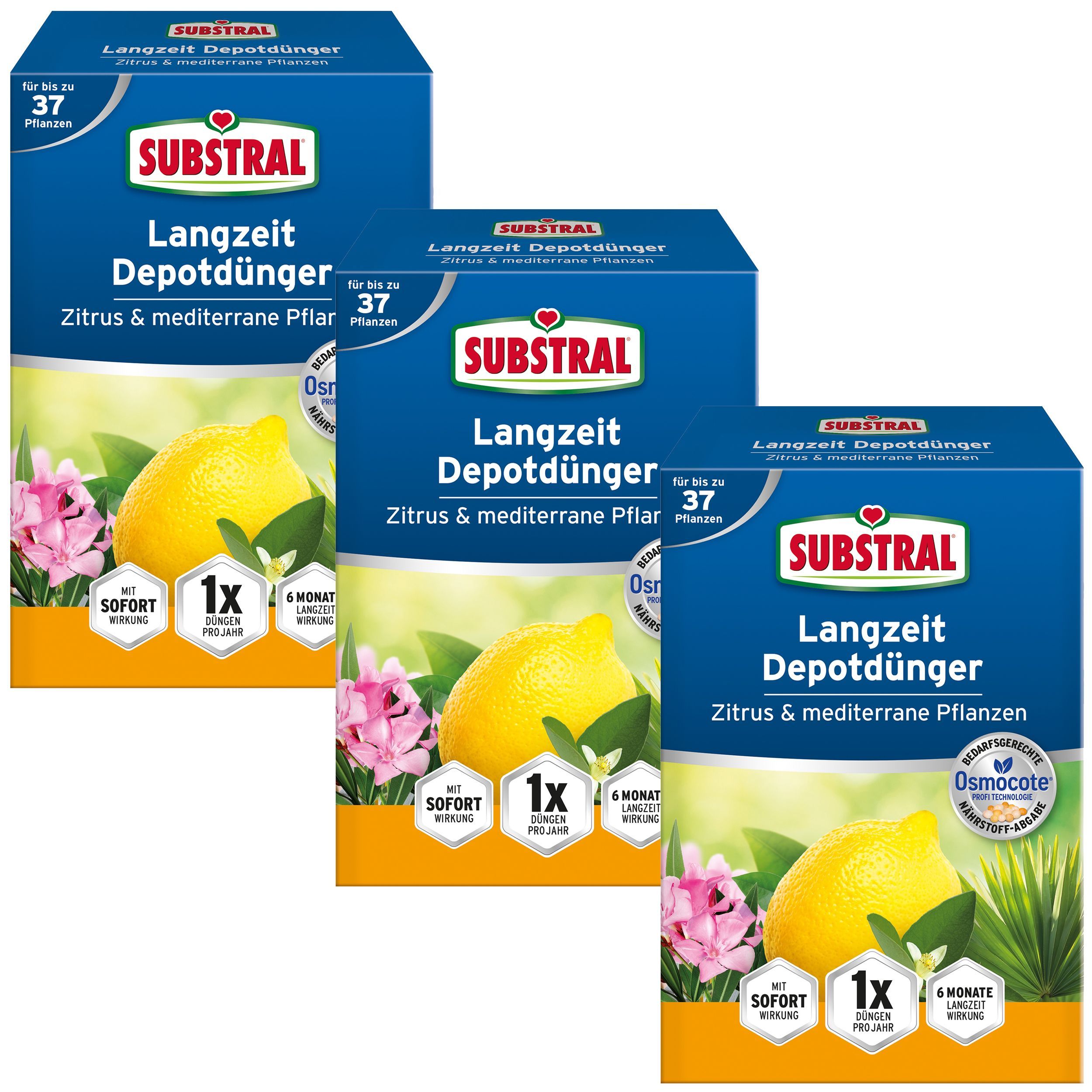 3 x SUBSTRAL® Langzeit Depotdünger für Zitrus & Mediterrane Pflanzen, 750 g