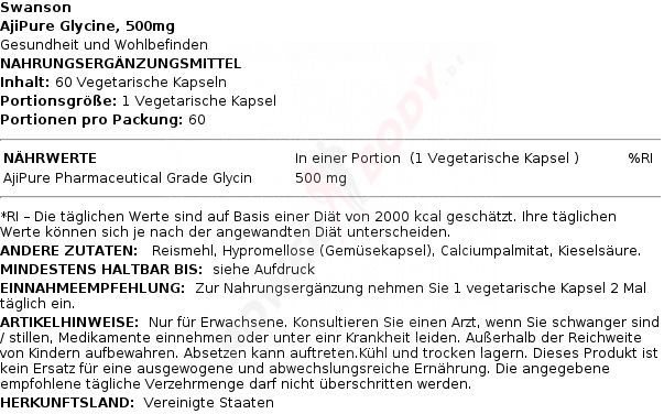 • 2 x Swanson AjiPure Glycine, 500mg - 60 vcaps