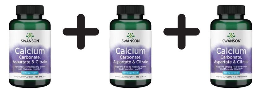 3 x Swanson Calcium (Carbonate, Aspartate & Citrate), 500mg - 100 tabs