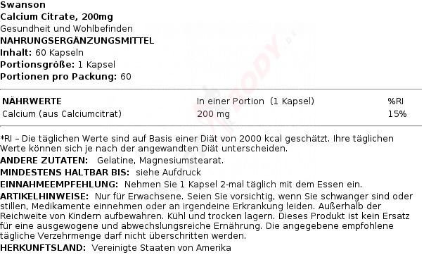 3 x Swanson Calcium Citrate, 200mg - 60 caps