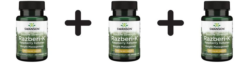3 x Swanson Double Strength Razberi-K, 200mg - 60 vcaps