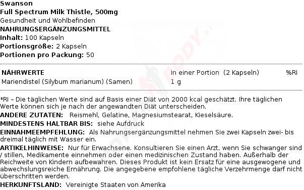 3 x Swanson Full Spectrum Milk Thistle, 500mg - 100 caps